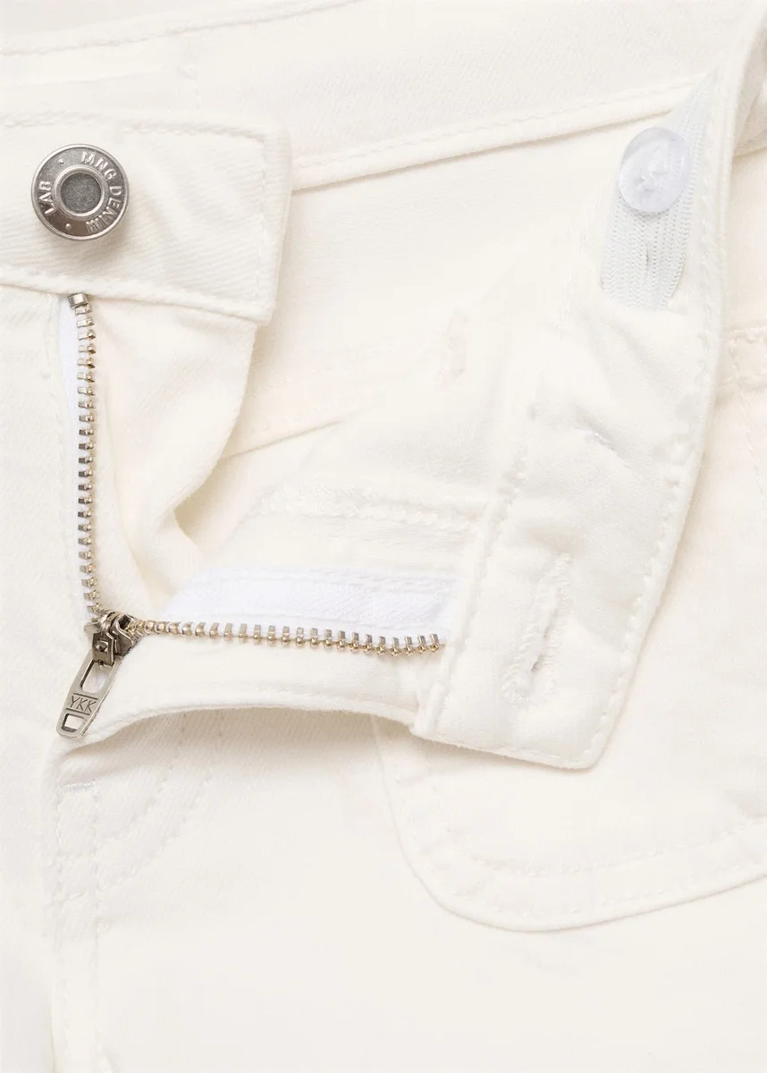 Bawełniana tkanina dżinsowa. Prosty krój. Krótki krój. Szlufki. Dwie naszywane kieszenie z przodu. Dwie naszywane kieszenie z tyłu. Zapięcie na guzik i zamek błyskawiczny. Produkt promocyjny