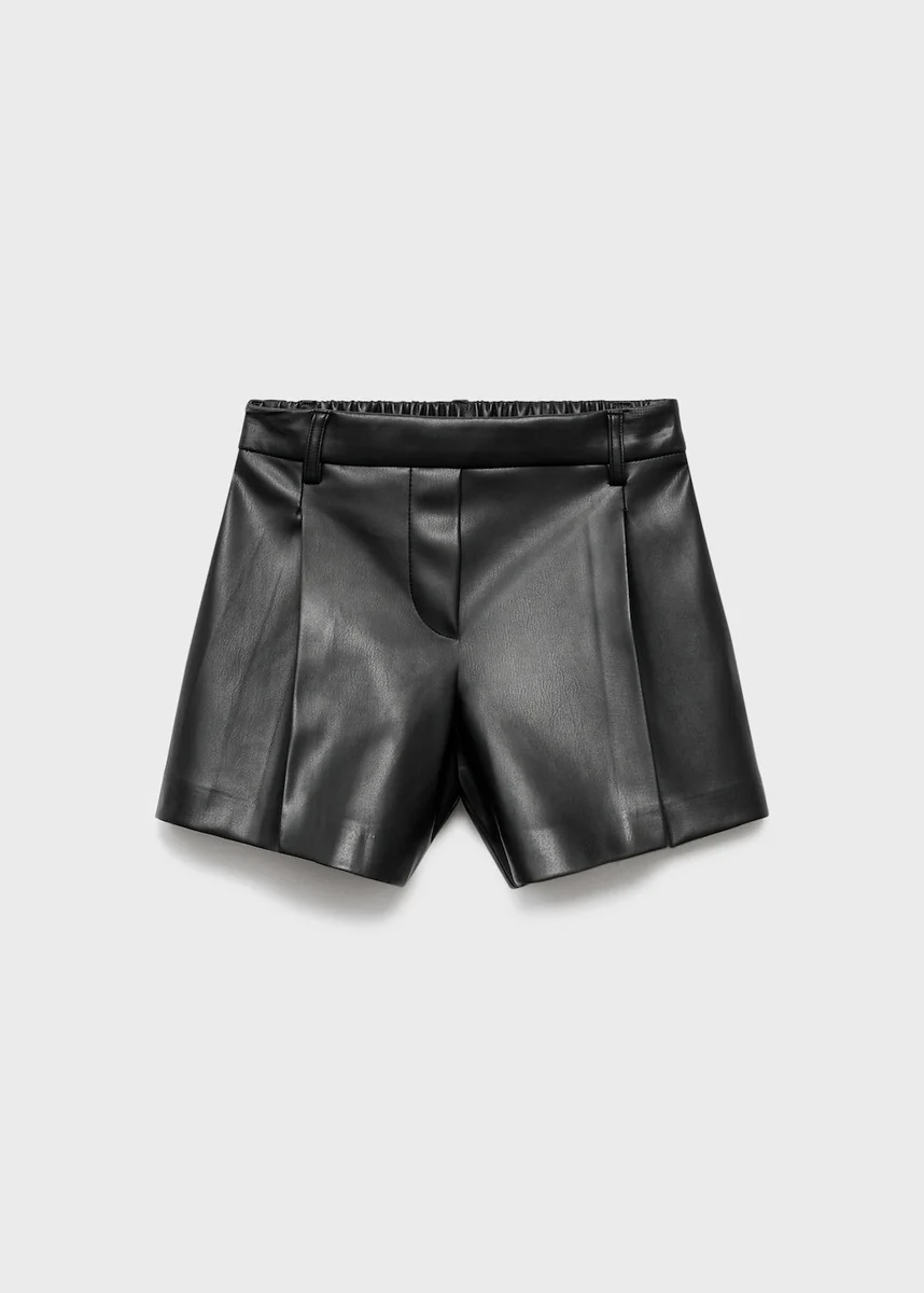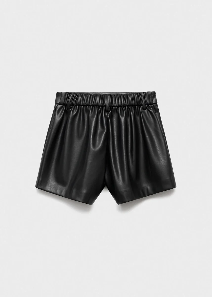 Materiał imitujący skórę. Krótki krój. Elastyczny pas. Szlufki. Marszczone wykończenie w talii.