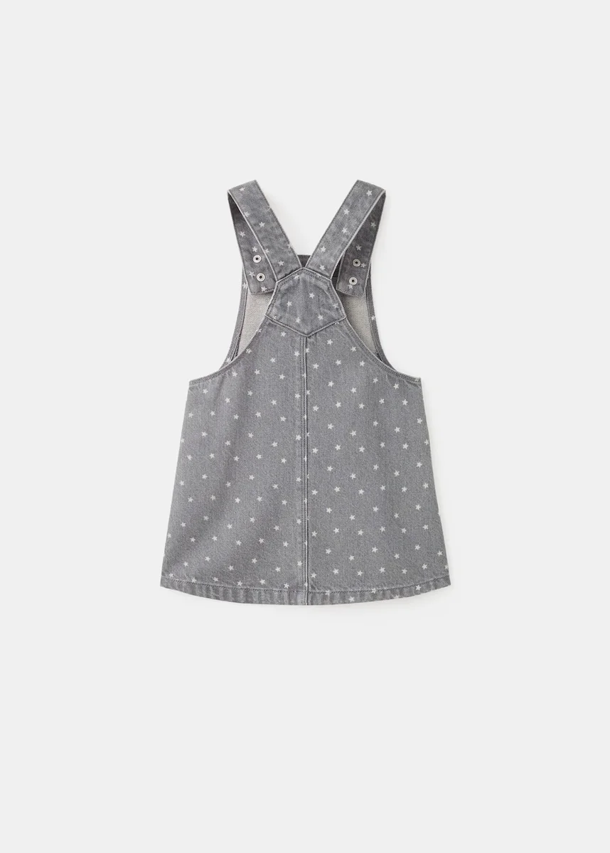 100% bawełna. Materiał dżinsowy. Wzór w gwiazdki. Prosty dekolt. Naszywana kieszeń. Ramiączka zapinane na guziki. Zapięcie na guziki z boku. Czarny piątek
