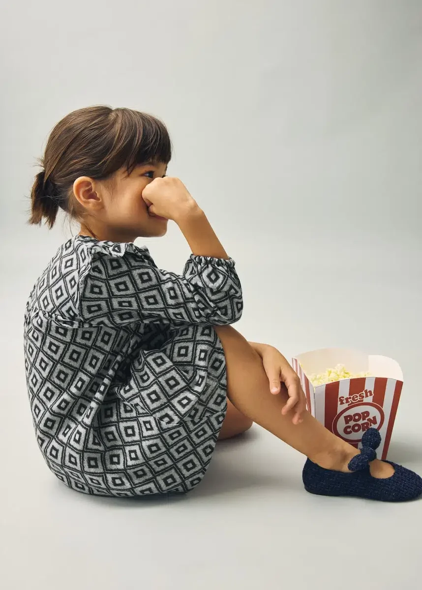 100% bawełna. Krój w kształcie litery A. Nadrukowany wzór. Etniczny nadruk. Okrągły dekolt. Falbanki na ramionach. Zapięcie na guziki z tyłu. Długie rękawy z elastycznymi mankietami. Marszczone wykończenie na piersi.
