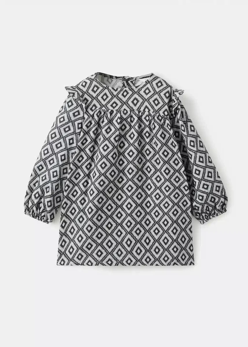 100% bawełna. Krój w kształcie litery A. Nadruk. Etniczny wzór. Okrągły dekolt. Falbanki na ramionach. Zapięcie na guziki z tyłu. Długie rękawy z elastycznymi mankietami. Marszczone wykończenie na piersi.
