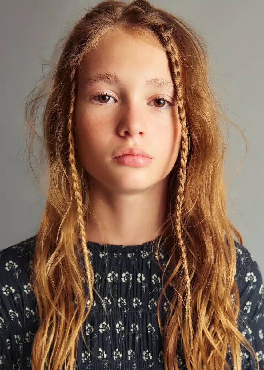 Płynny materiał. Krój w kształcie litery A. Nadrukowany wzór. Kwiatowy nadruk. Okrągły dekolt. Długi rękaw. Marszczone detale. Zapięcie na guziki z tyłu. Powrót do szkoły