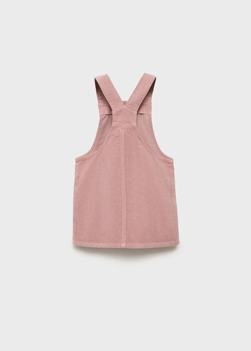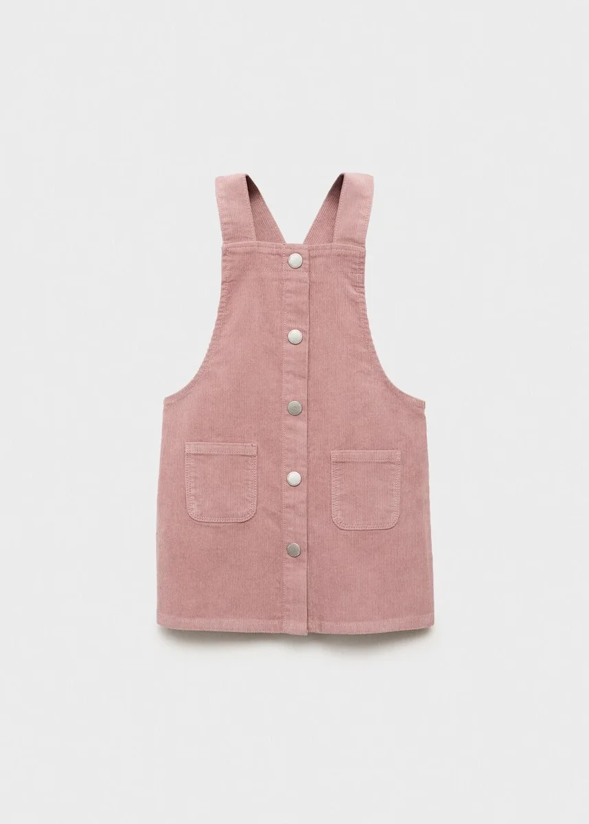 Tkanina sztruksowa. 100% bawełna. Prosty krój. Prosty dekolt. Ramiączka. Zapięcie na guziki z przodu. Dwie naszywane kieszenie z przodu