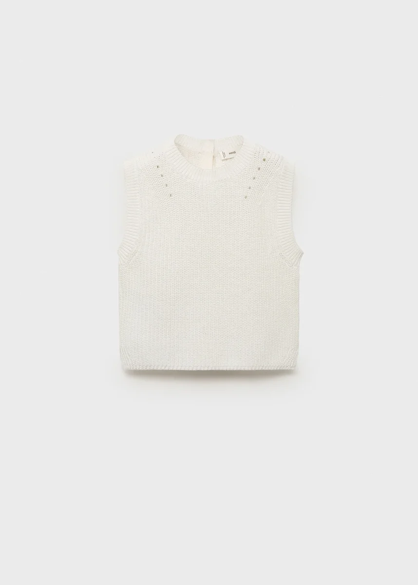 100% bawełna. Dzianina. Prosty krój. Okrągły dekolt. Bez rękawów. Zapięcie na guziki z tyłu.