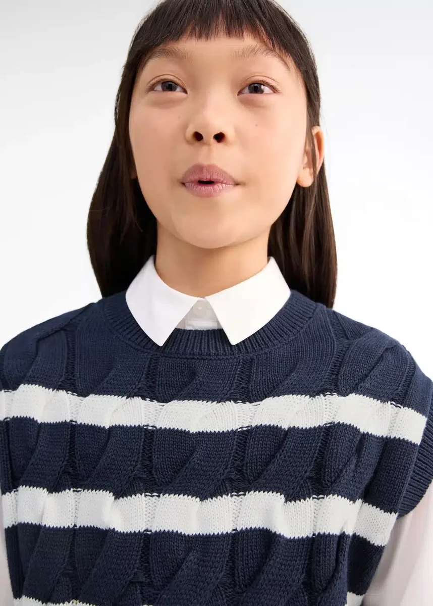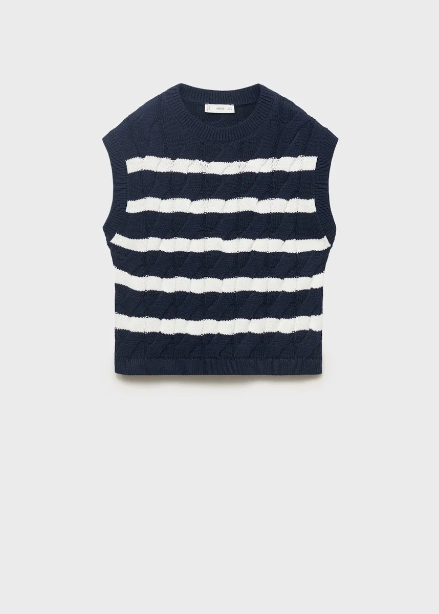 100% bawełna. Dzianina. Dzianina pleciona. Paski. Okrągły dekolt. Bez rękawów. Bez zapięcia. Czarny piątek