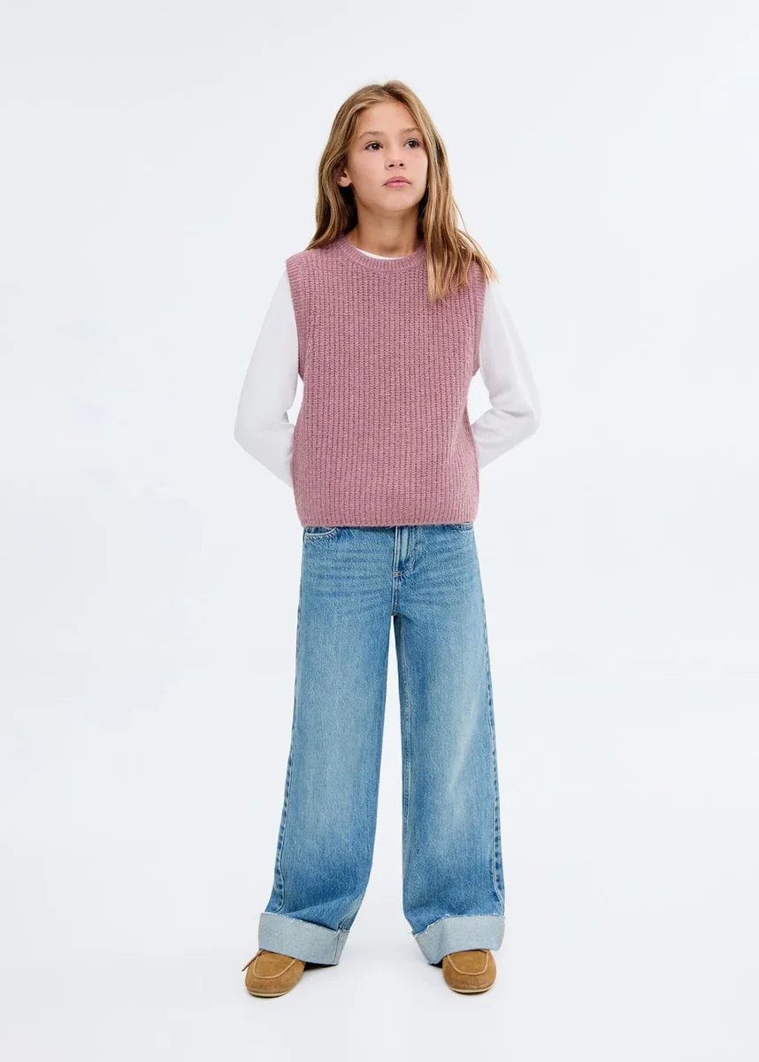 Dzianina prążkowana. Dzianina. Prosty krój. Okrągły dekolt. Bez rękawów.