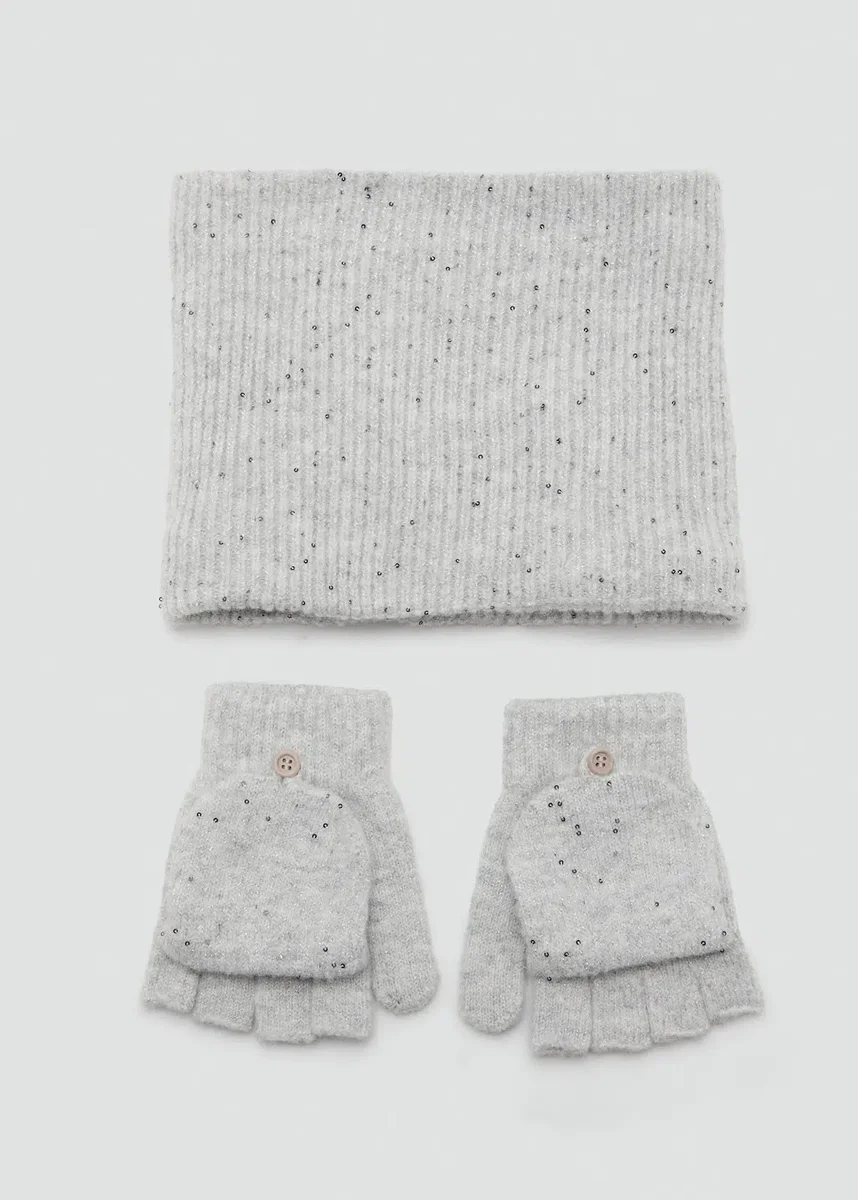Dzianina. Detale z cekinami. Dostępny zestaw. Pasująca czapka, szalik i rękawiczki. Kolekcja świąteczna