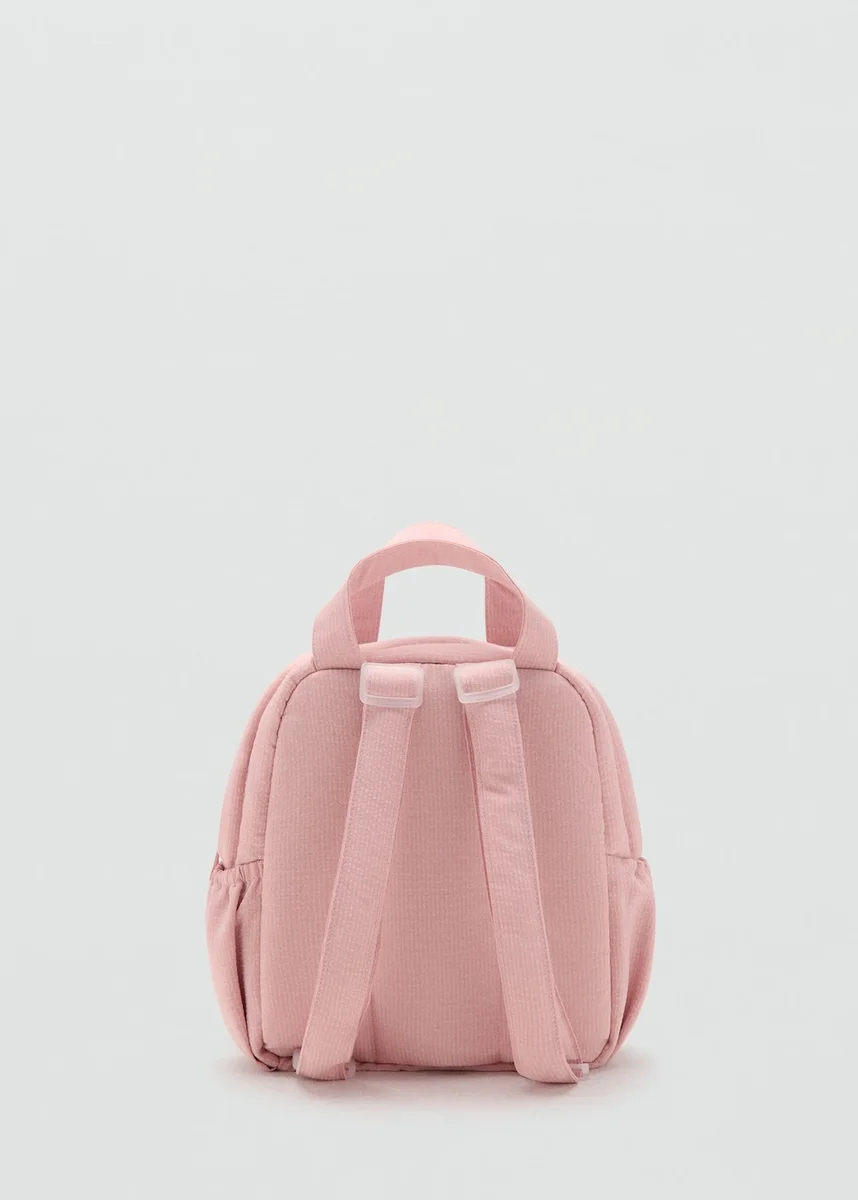 Plecak. Detal w postaci zawieszki. Zawieszka z motywem baletowym. Dwa długie uchwyty. Dwa krótkie uchwyty. Dwie boczne kieszenie. Kieszeń z zamkiem błyskawicznym z przodu. Zapięcie na zamek błyskawiczny. Etykieta na dane osobowe. Czarny piątek