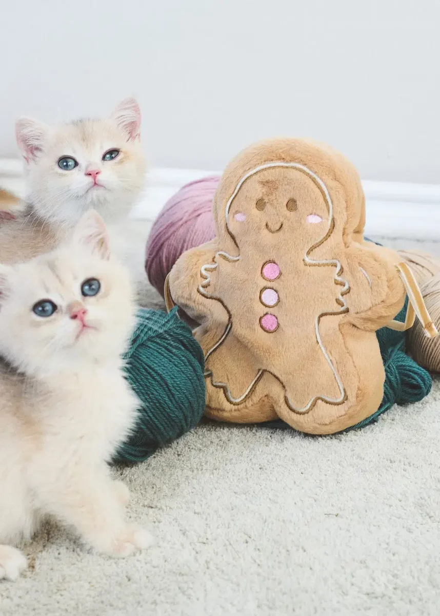 Materiał futrzany. Wzór piernika. Długie uchwyty. Zapięcie na zamek błyskawiczny. Kolekcja świąteczna.