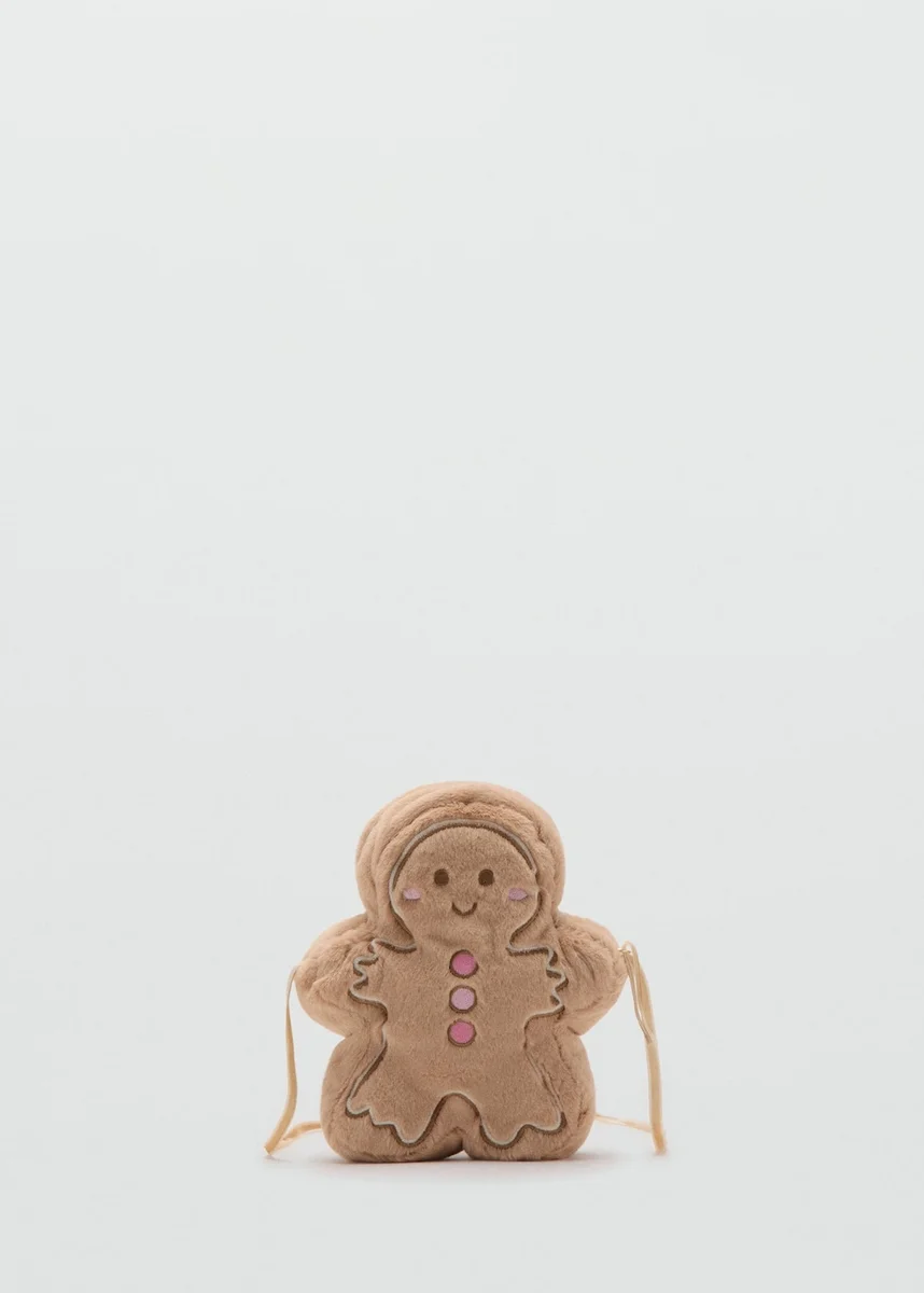 Materiał futrzany. Motyw piernika. Długi uchwyt. Zapięcie na zamek błyskawiczny. Kolekcja świąteczna