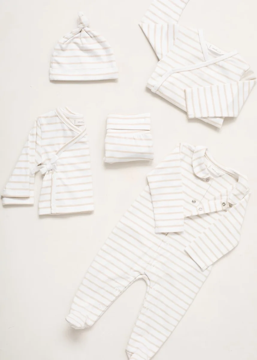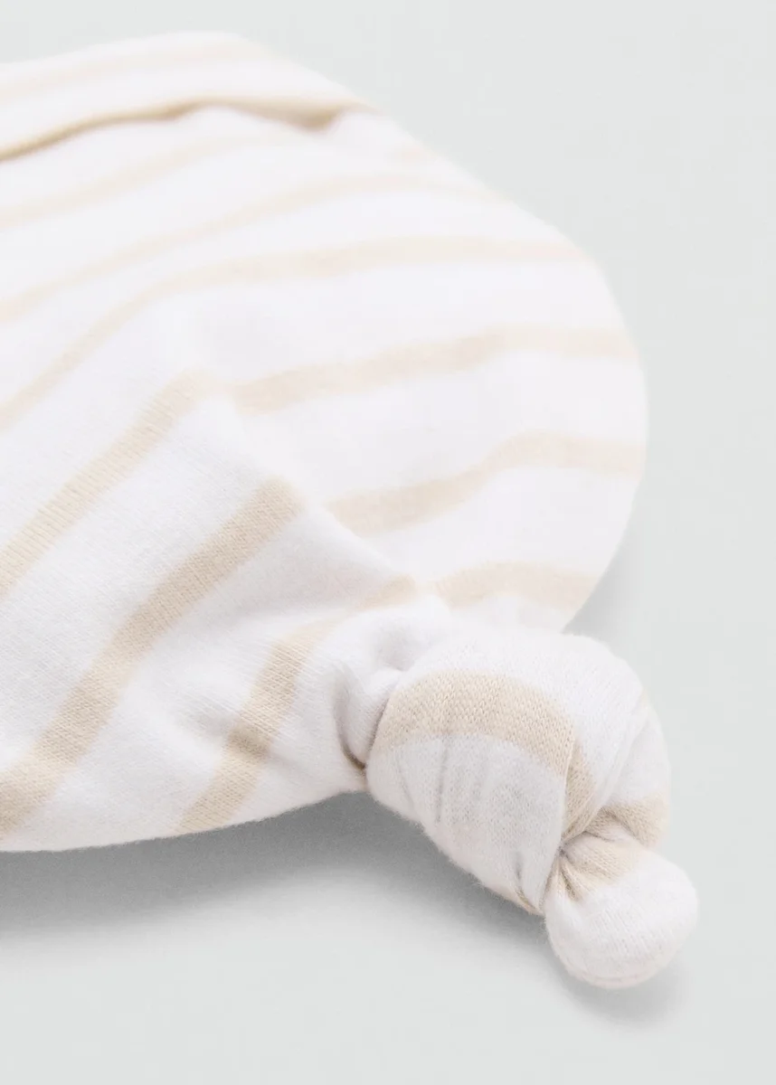 Tkanina bawełniana. Tkanina elastyczna. Wzór w paski. Detal w postaci supełka. Obszycie u dołu. Kolekcja Welcome. Kolekcja dla kobiet w ciąży.