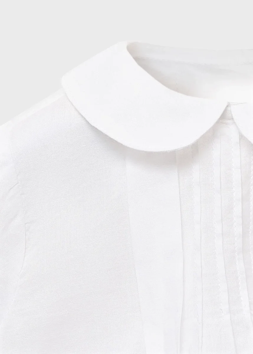 Kolekcja Welcome. Kolekcja dla kobiet w ciąży. 100% bawełna. Prosty krój. Marszczone wykończenie. Kołnierzyk typu Peter Pan. Długie rękawy. Zapięcie na guziki z tyłu. Czarny piątek.