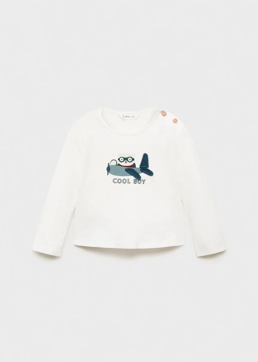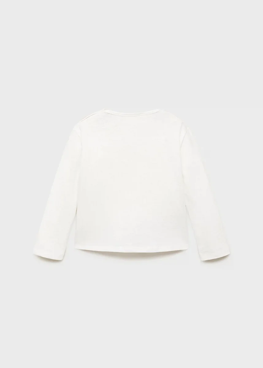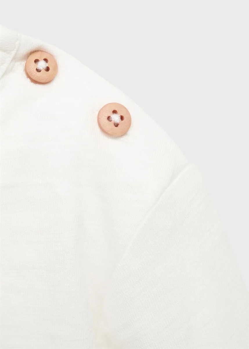 Ta odzież, wykonana w 100% z bawełny, ma prosty krój z okrągłym dekoltem i długimi rękawami. Nadrukowany wzór uzupełniają haftowane detale i zapięcie na guziki przy szyi