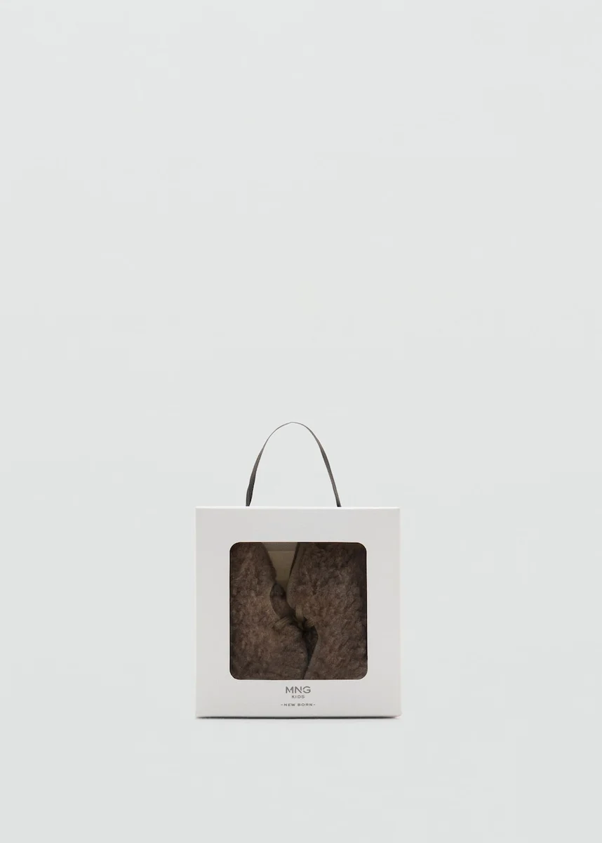 Tkanina typu sherpa. Projekt bucików dla niemowląt. Koronkowe wykończenie. Skórzana podeszwa. Skóra bydlęca. Wyłącznie online. Czarny piątek