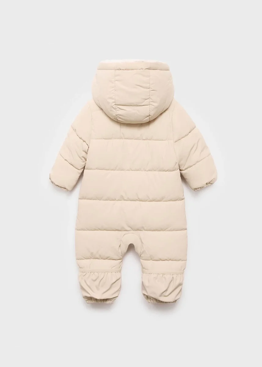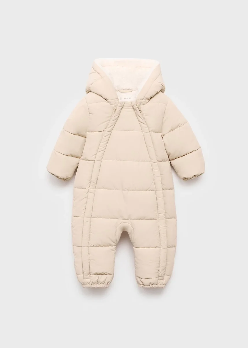 Pikowany wzór. Długi fason. Okrągły dekolt. Kaptur z syntetycznym wykończeniem. Długie rękawy. Niewidoczny zamek błyskawiczny z przodu. Wewnętrzna podszewka z polaru polarowego.