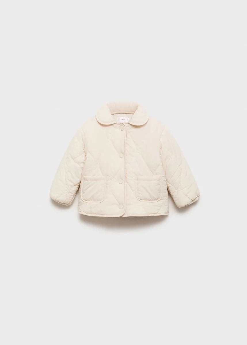 Pikowana tkanina. Sztuczna tkanina owcza. Prosty krój. Kołnierzyk Babydoll/Peter Pan. Długie rękawy. Zapięcie na guziki. Dwie kieszenie z przodu. Wnętrze z imitacji owczej skóry