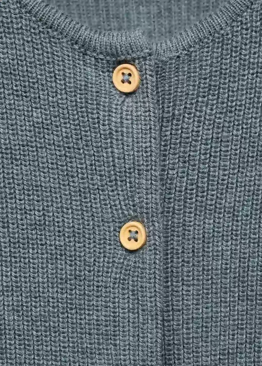 Dzianina. Tkanina bawełniana. Długi krój. Okrągły dekolt. Długie rękawy. Zapięcie na guziki z przodu. Dolne wykończenie z zapięciem na guziki.