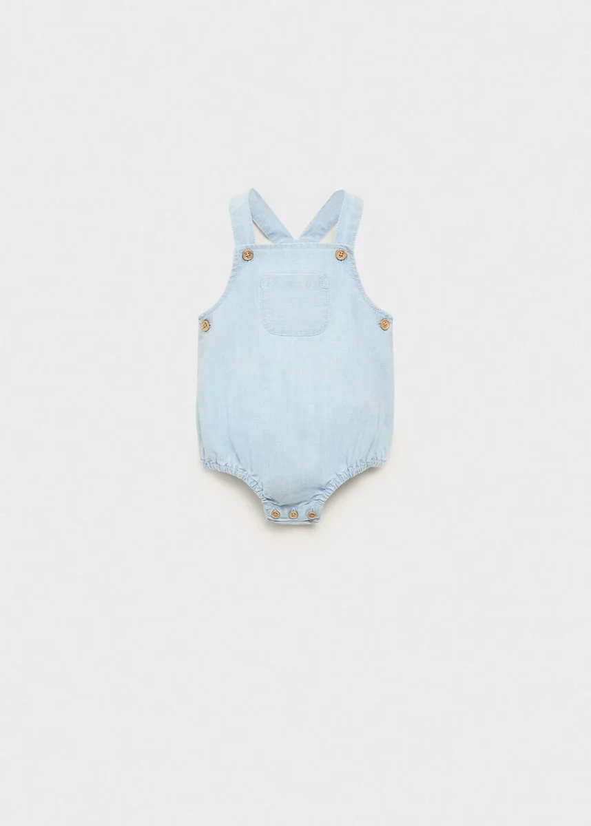 100% bawełna. Dżinsowy krój. Prosty krój. Krótki krój. Prosty dekolt. Ramiączka zapinane na guziki. Zapięcie na guziki z boku. Dolne wykończenie zapinane na guziki. Czarny piątek