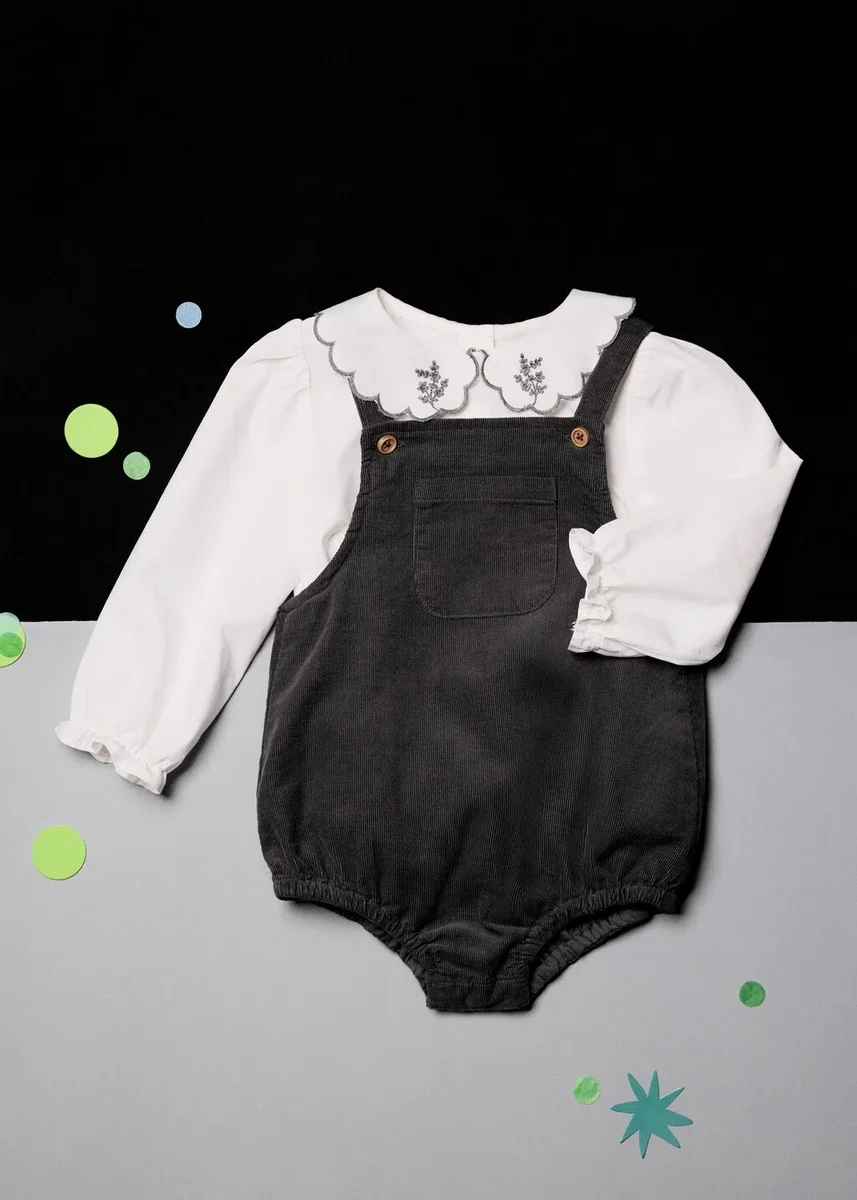 100% bawełna. Materiał sztruksowy. Prosty dekolt. Ramiączka zapinane na guziki. Naszywana kieszeń z przodu. Elastyczny dół. Kolekcja świąteczna.