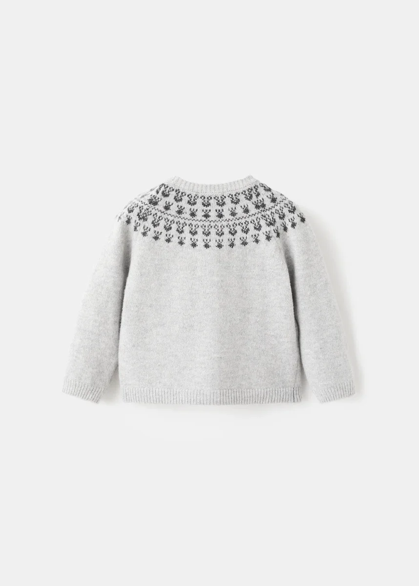 Dzianina. Prosty krój. Haftowane wykończenie. Okrągły dekolt. Długie rękawy. Zapięcie na guziki z przodu. Kolekcja świąteczna.