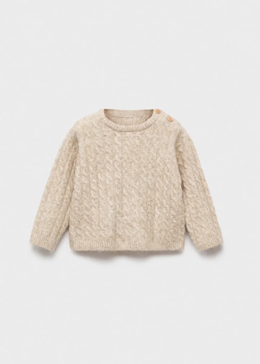 Dzianina. Ścieg warkoczowy. Prosty krój. Okrągły dekolt z zapięciem na guziki. Długie rękawy. Całościowy look. Kolekcja świąteczna. Czarny piątek.