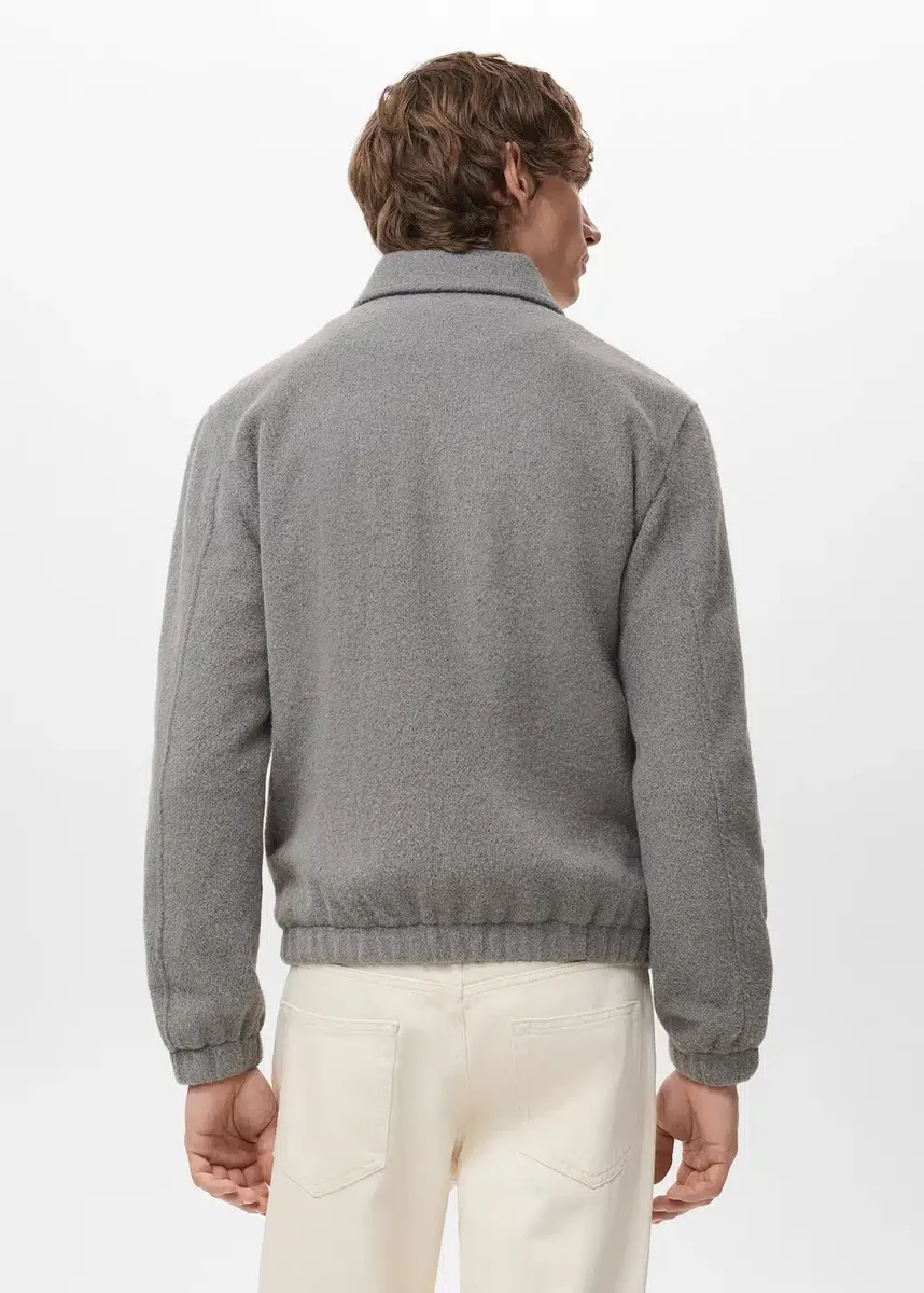 Krój regularny. Miękka faktura. Kołnierz z klapami. Dwie kieszenie boczne. Długie rękawy z prążkowanymi wykończeniami. Zapięcie na zamek błyskawiczny z przodu.