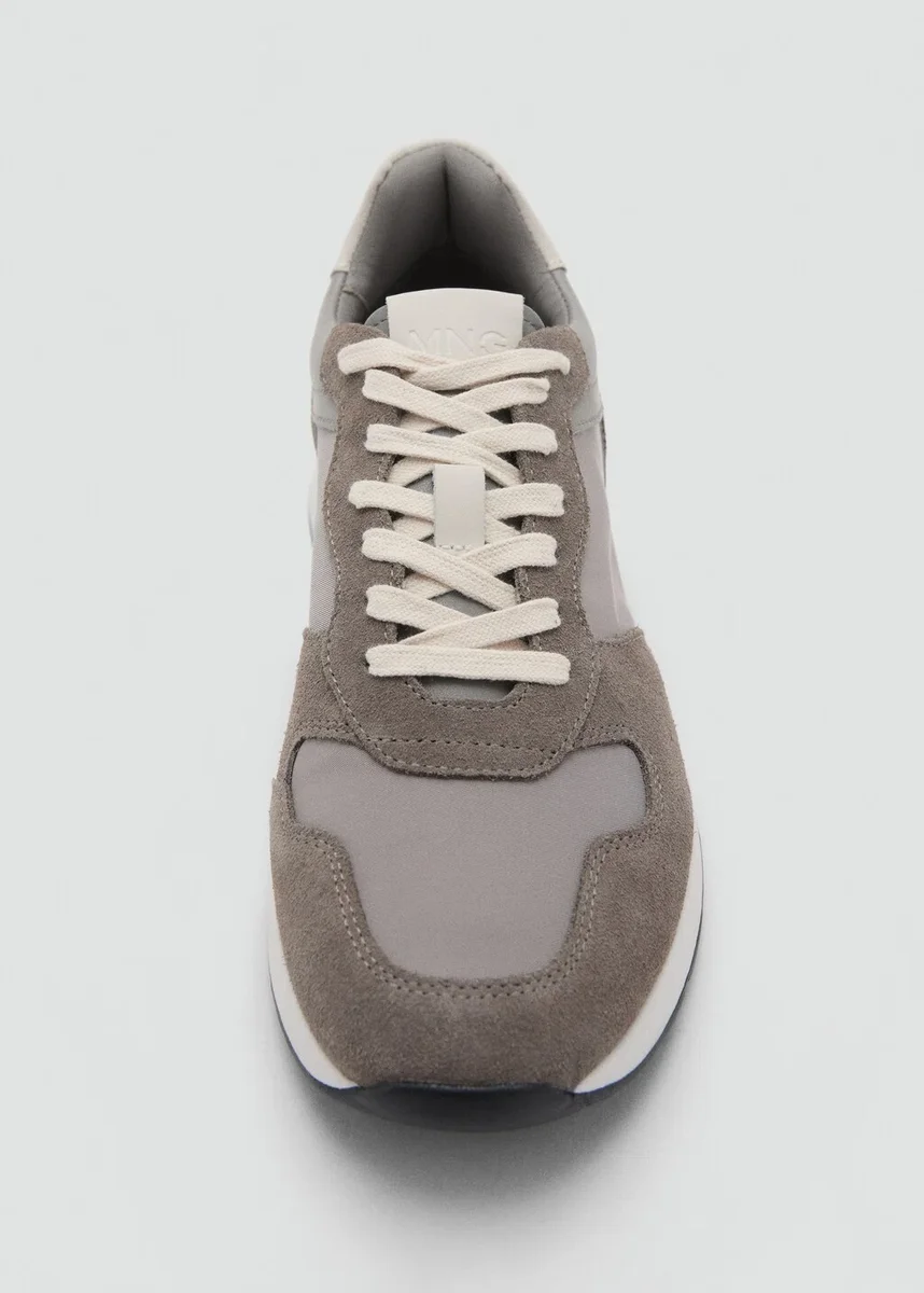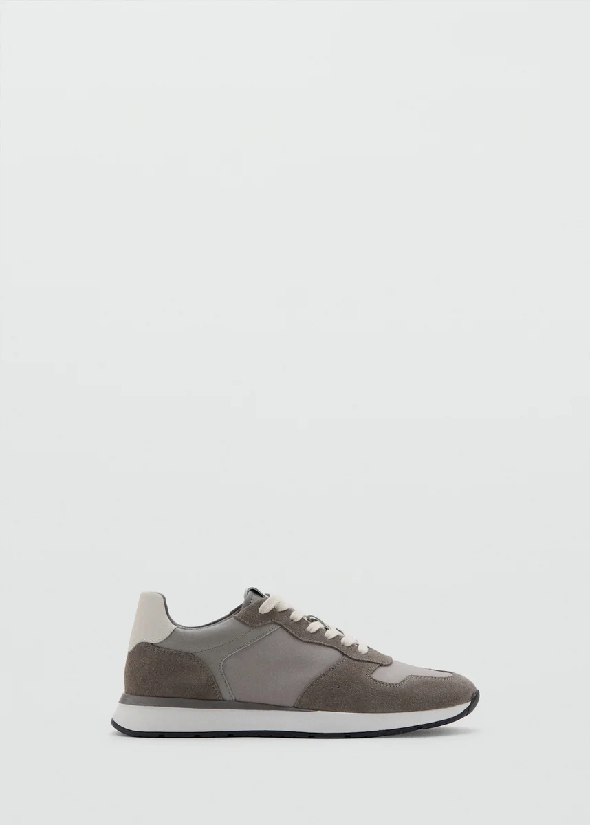 Styl biegowy. Skórzane detale. Połączenie kolorów i materiałów w kroju. Zaokrąglony nosek. Sześciokrotne sznurowanie. Gumowa podeszwa z ząbkami.