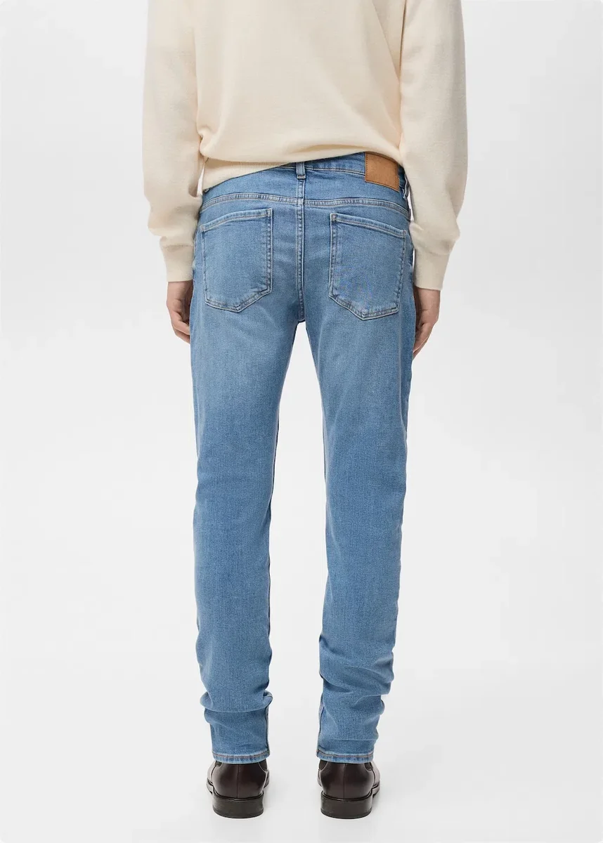 Krój skinny: najwęższe dżinsy. Styl dżinsowy. Tkanina bawełniana. Średni odcień. Szlufki. Zapięcie na zamek błyskawiczny i guzik. Dwie kieszenie boczne. Kieszeń na monety. Dwie naszywane kieszenie z tyłu.