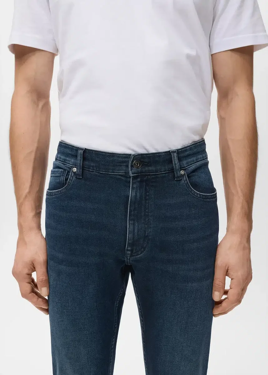 Krój skinny: najwęższe jeansy. Bawełniana tkanina dżinsowa. Ciemny kolor. Szlufki. Zapięcie na zamek błyskawiczny i guzik. Dwie kieszenie boczne. Kieszeń na monety. Dwie naszywane kieszenie z tyłu.