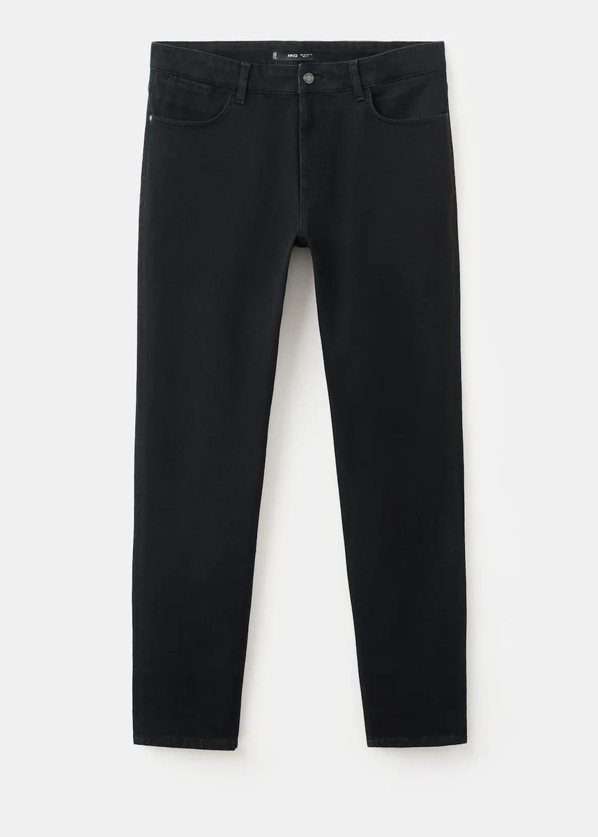 Slim fit. Tkanina bawełniana. Miękka tkanina. Dwie kieszenie boczne. Kieszeń na monety. Dwie naszywane kieszenie z tyłu. Szlufki. Zapięcie na zamek błyskawiczny i guzik.