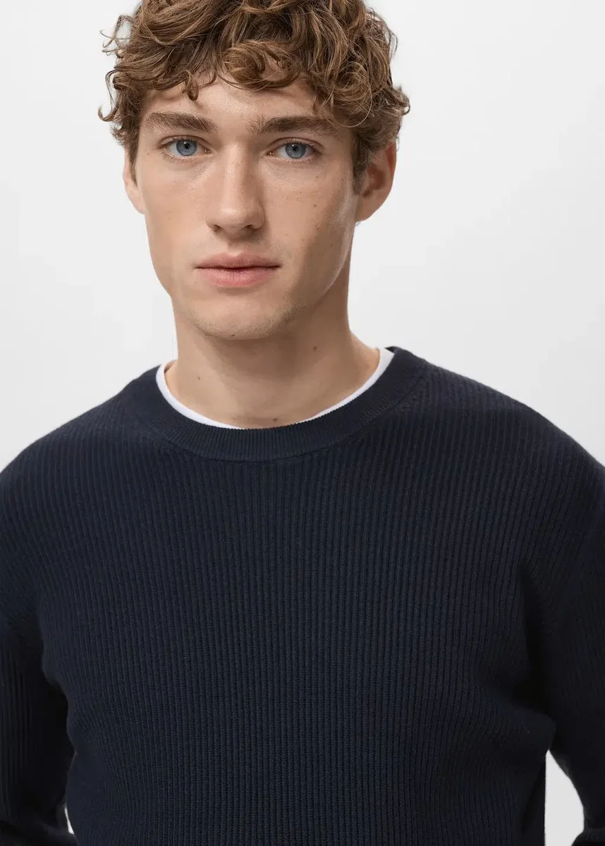 Długie rękawy. Prosty krój. Okrągły kołnierzyk. Delikatna dzianina. Standardowa długość. Regularny krój. Tkanina z mieszanki bawełny. Delikatna dzianina. Prążkowany wzór. Okrągły dekolt. Długie rękawy z elastycznymi mankietami. Prosty dół. Nieobszyty dół. Modele w kolorze czekoladowego brązu i błękitnym niebie są dostępne wyłącznie w sprzedaży internetowej. Dzianina warkoczowa. Produkt promocyjny.