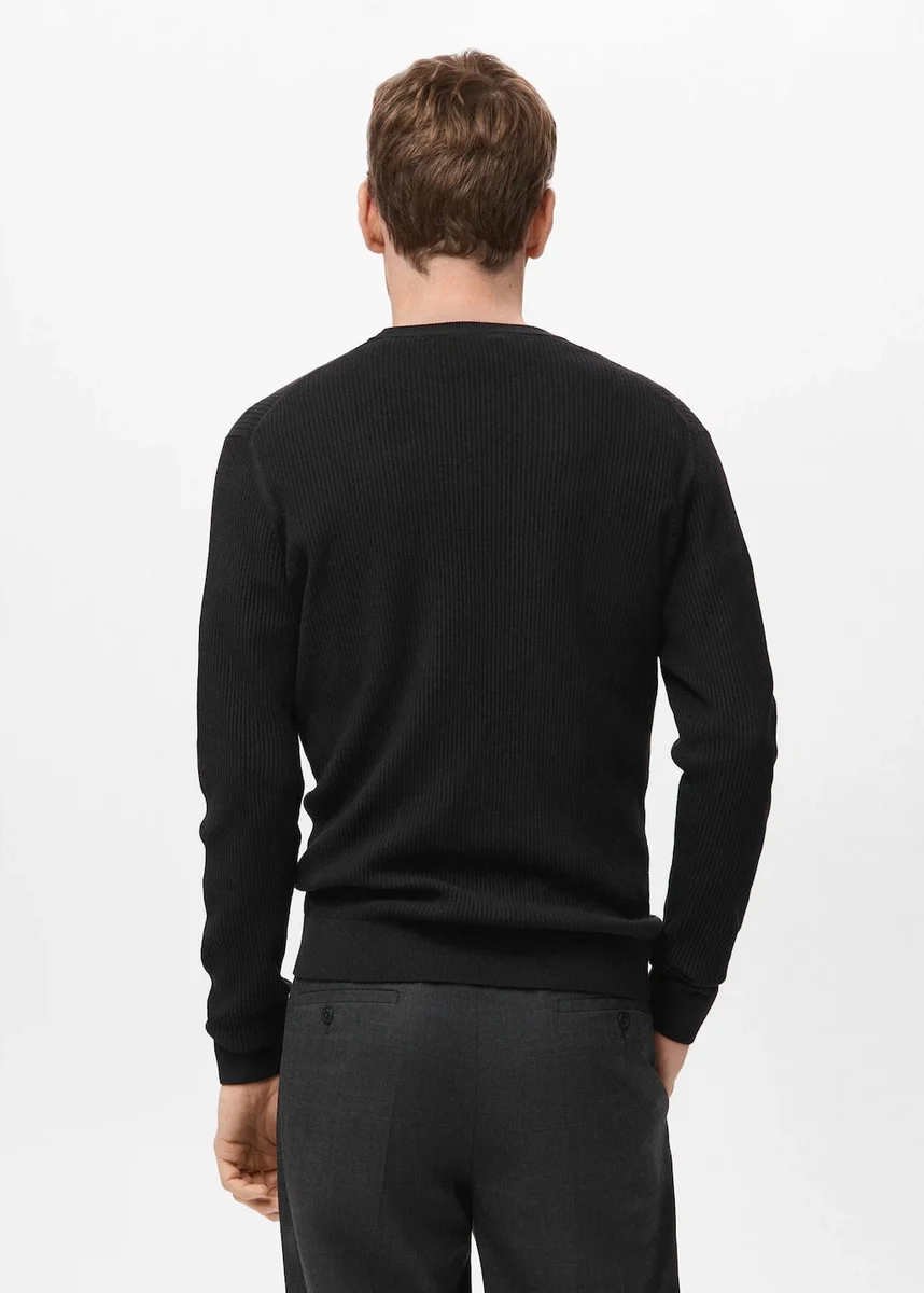 Regularny krój. Tkanina z mieszanki bawełny. Dzianina warkoczowa. Okrągły dekolt. Długie rękawy z elastycznymi mankietami. Prosty dół. Nieobrobiony dół. Modele w kolorze czekoladowym brązie i błękitnym są dostępne wyłącznie w sprzedaży internetowej. Dzianina o drobnym splocie. Prążkowany wzór. Standardowa długość. Długie rękawy. Prosty krój. Okrągły kołnierzyk. Dzianina o drobnym splocie. Produkt promocyjny