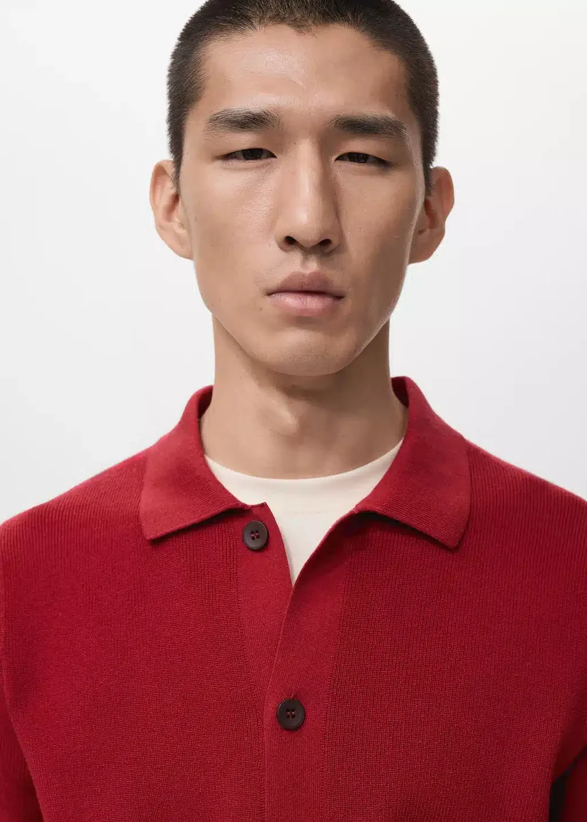 Krój regularny. Tkanina z mieszanki bawełny. Dzianina strukturalna. Kołnierzyk koszulowy. Prążkowany kołnierzyk, rękawy i dół. Zapięcie na guziki z przodu.