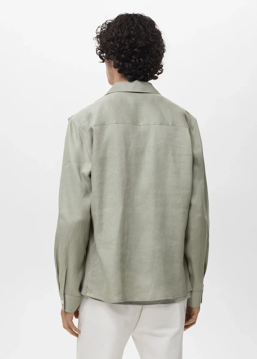 100% len. Regularny krój. Zapięcie na guziki z przodu. Dwie naszywane kieszenie na piersi. Mankiety zapinane na guziki. Małe rozcięcia po bokach u dołu. Prosty dół. Skład: 100% len. Prać w pralce w temperaturze maksymalnej 30°C / 85°F. Nie wybielać. Prasować w temperaturze maksymalnej 110°C / 230°F. Czyścić chemicznie perchloroetylenem. Nie suszyć w suszarce bębnowej. 100% len. Regularny krój. Zapięcie na guziki z przodu. Dwie naszywane kieszenie na piersi. Mankiety zapinane na guziki. Małe rozcięcia po bokach u dołu. Prosty dół.