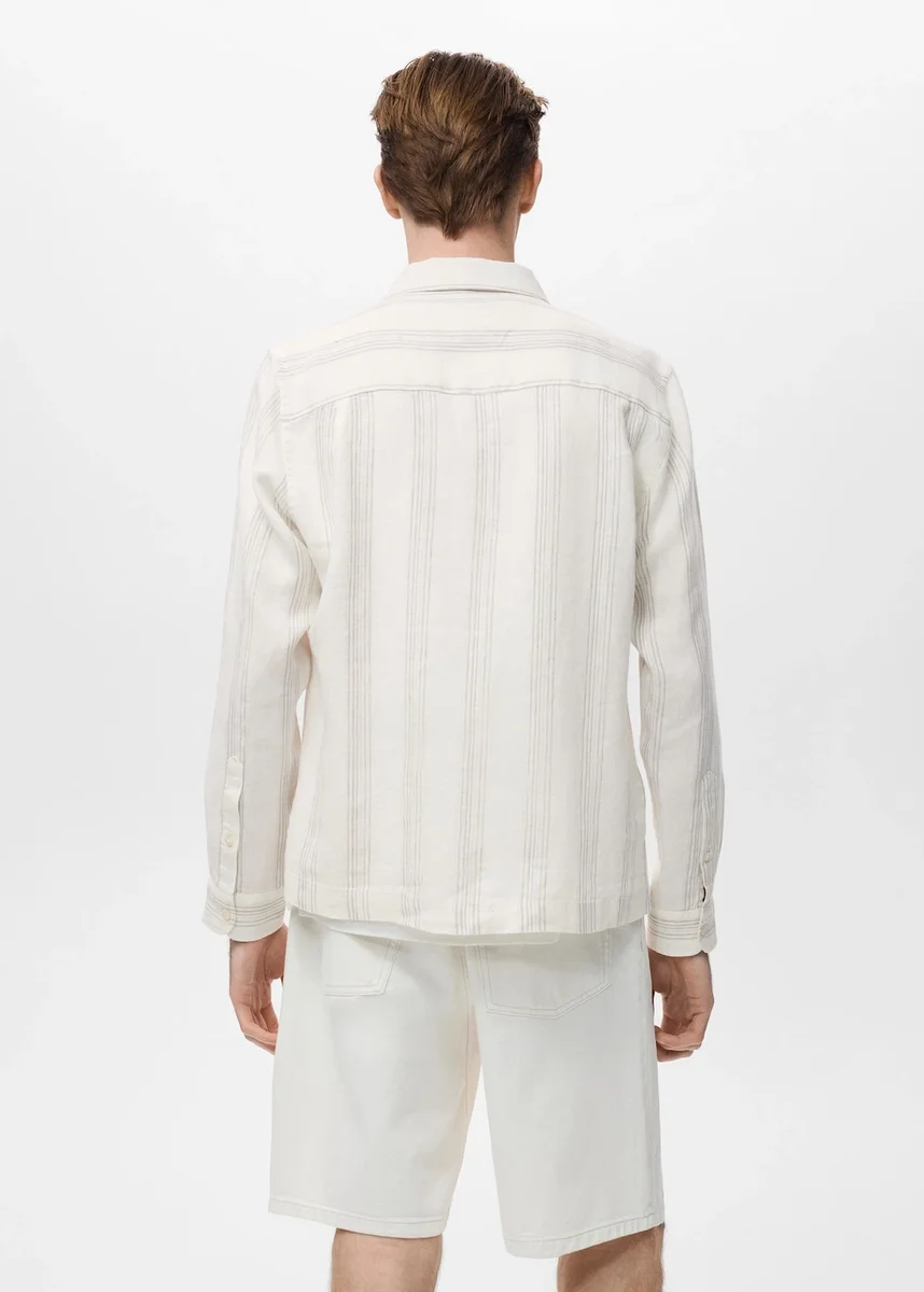 100% len. Regularny krój. Kołnierzyk koszulowy. Zapięcie na guziki z przodu. Dwie naszywane kieszenie na piersi. Zaszewki z tyłu. Mankiety zapinane na guziki. Prosty dół. Zestaw dostępny jako komplet. Produkt promocyjny.