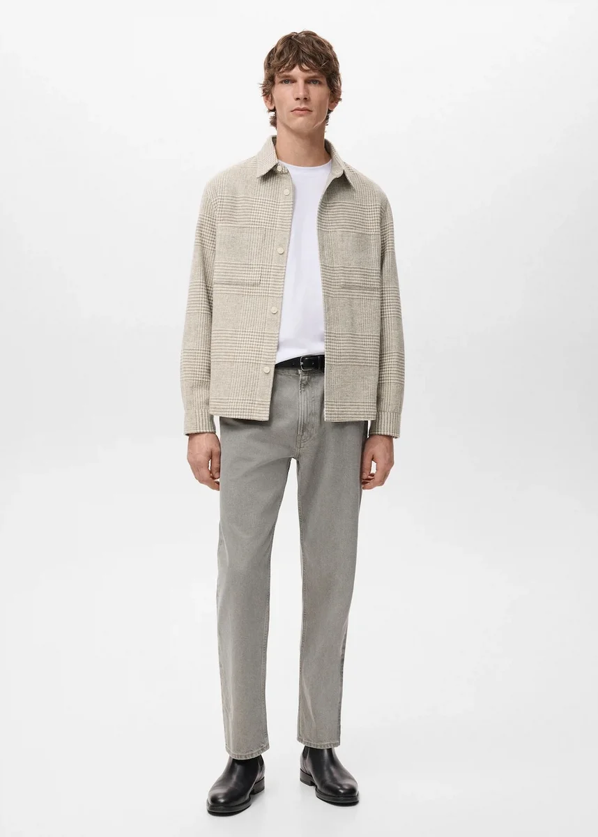Krój regularny. Mieszanka wełny. Nadruk w mikroplamki. Kołnierzyk koszulowy. Dwie naszywane kieszenie z przodu. Długie rękawy z mankietami zapinanymi na guziki. Zapięcie na guziki z przodu.