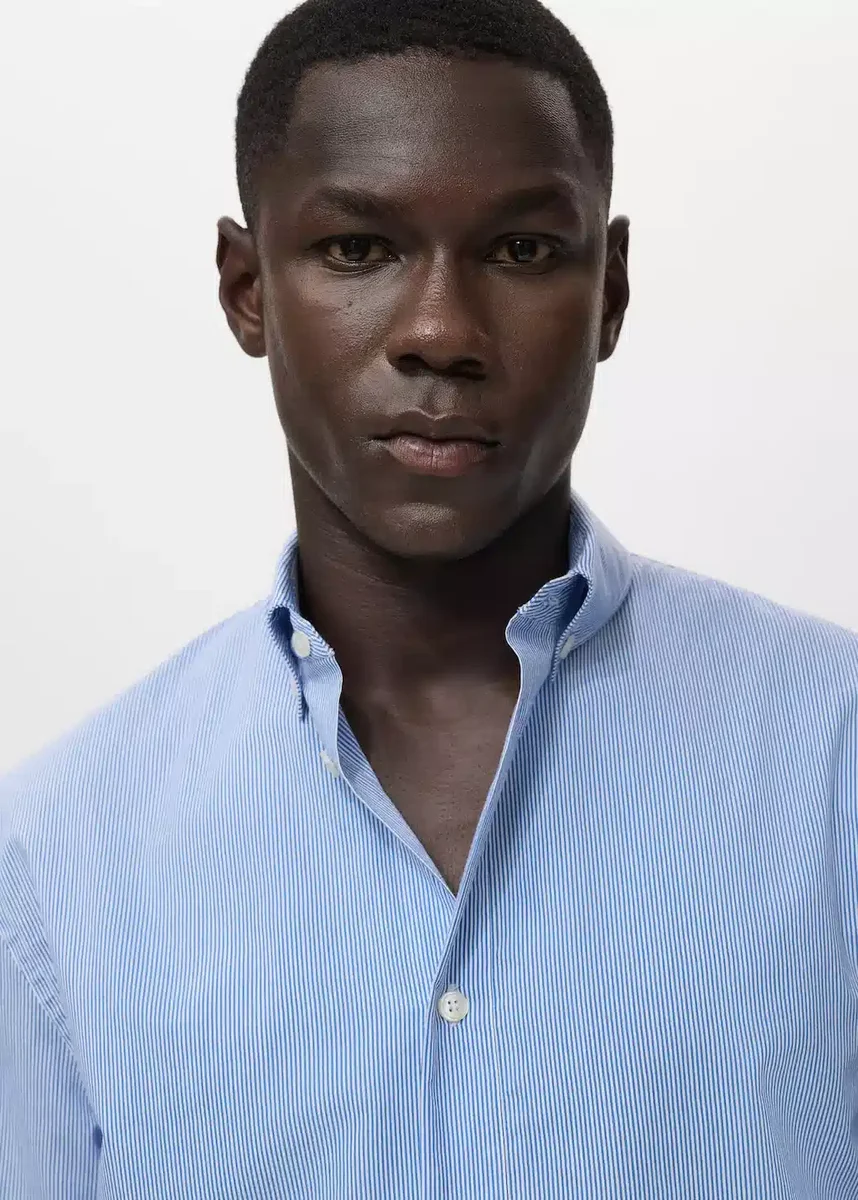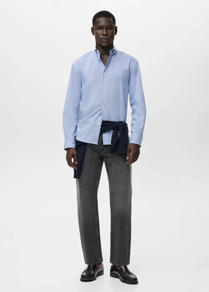 Krój regularny. Tkanina z mieszanki bawełny. Wzór w paski. Kołnierzyk koszulowy. Długie rękawy z mankietami zapinanymi na guziki. Zapięcie na guziki z przodu. Zaokrąglony dół. Skład: 84% bawełna, 16% poliamid Prać w pralce w temperaturze maksymalnej 30°C Nie wybielać Prasować w temperaturze maksymalnej 110°C Czyścić chemicznie w perchloroetylenie Nie suszyć w suszarce bębnowej Regularny krój. Mieszanka bawełny. Paski. Kołnierzyk koszulowy. Długie rękawy z mankietami zapinanymi na guziki. Zapięcie na guziki z przodu. Zaokrąglony dół.