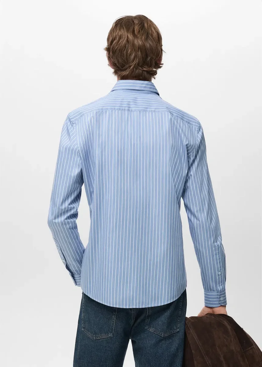 Krój regularny. 100% bawełna. Nadruk w paski. Kołnierzyk koszulowy z klapami. Długie rękawy z mankietami zapinanymi na guziki. Zapięcie na guziki z przodu.