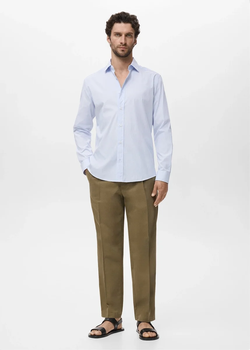 100% bawełna. Nadruk w paski. Regularny krój. Kołnierzyk koszulowy z klapami. Kołnierzyk koszulowy. Długie rękawy z mankietami zapinanymi na guziki. Zapięcie na guziki z przodu.