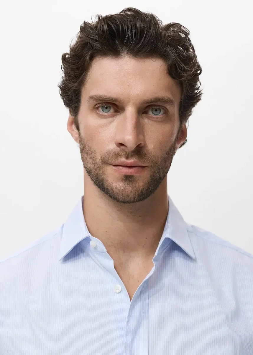 100% bawełna. Nadruk w paski. Krój regularny. Kołnierzyk koszulowy z klapami. Kołnierzyk koszulowy. Długie rękawy z mankietami zapinanymi na guziki. Zapięcie na guziki z przodu