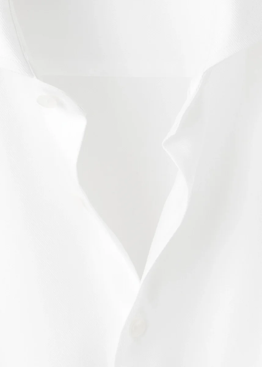 Regularny krój. 100% bawełna. Kołnierzyk z wycięciem. Długie rękawy z mankietami zapinanymi na guziki. Zapięcie na guziki z przodu. Zaokrąglony dół.
