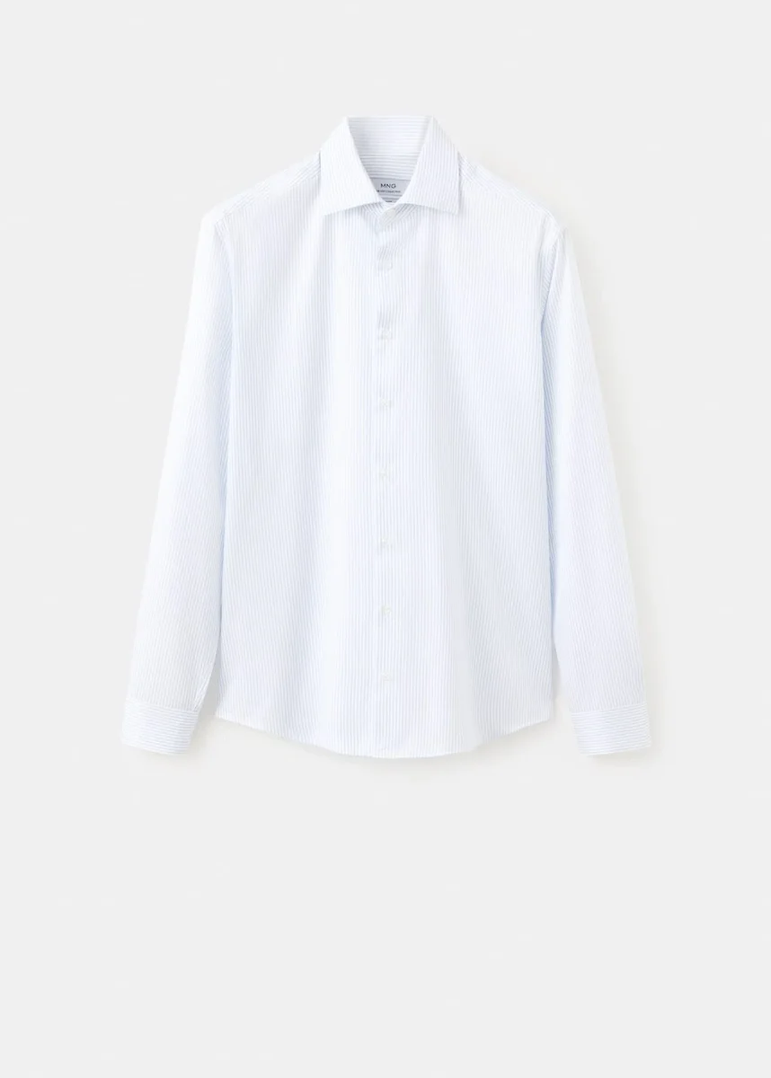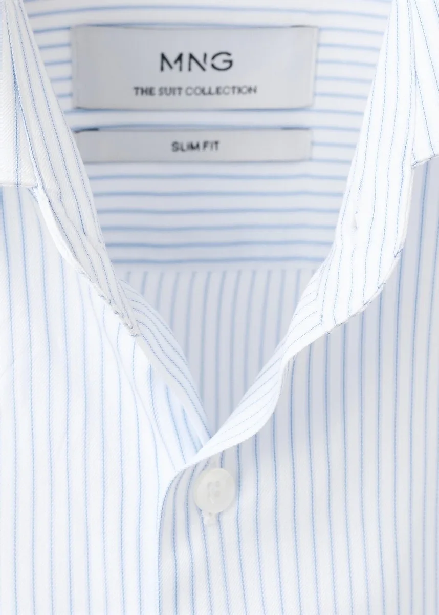 Slim fit. 100% bawełna. Kołnierzyk koszulowy. Zapięcie na guziki z przodu. Długie rękawy z mankietami zapinanymi na guziki.