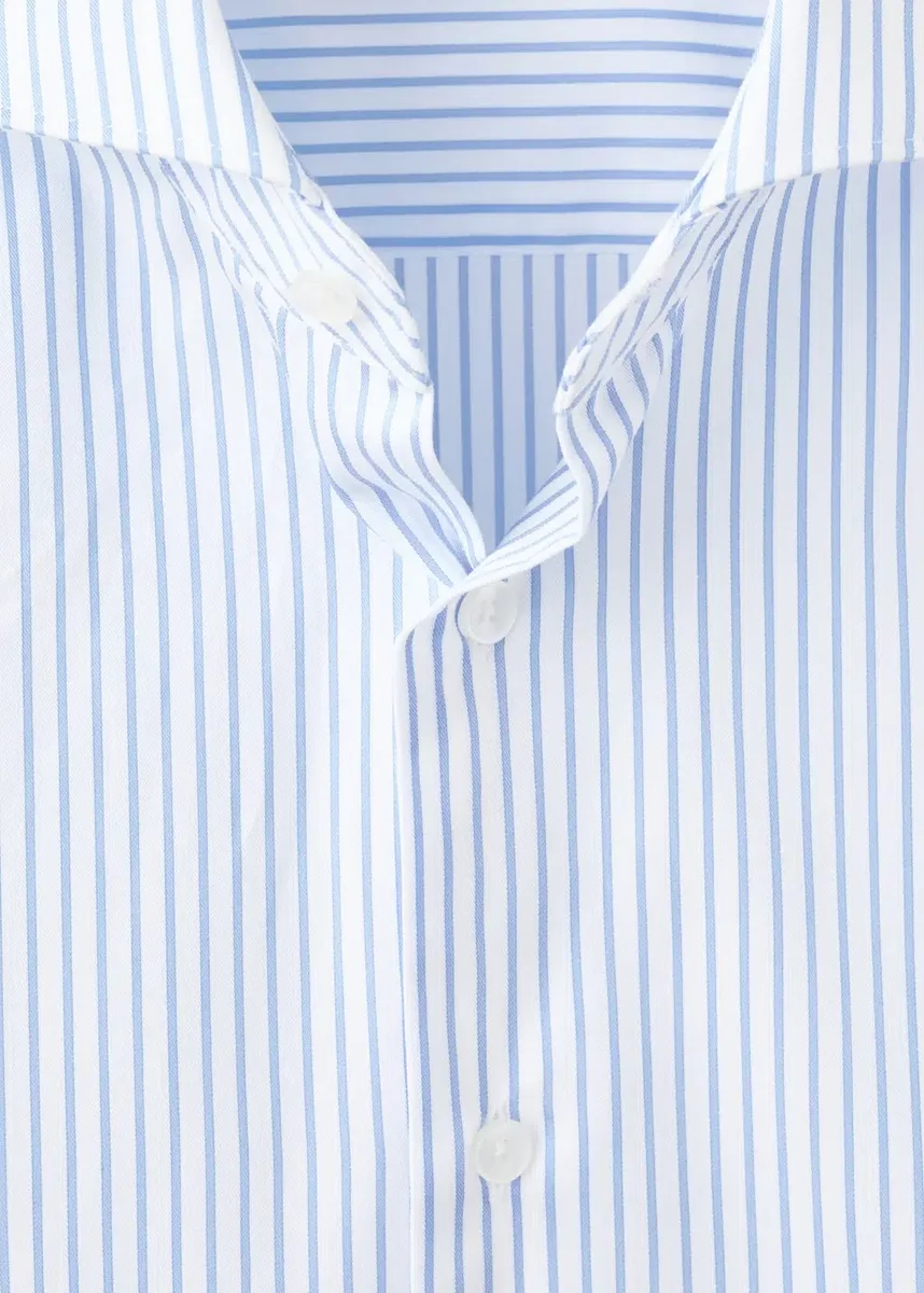 Krój slim fit. 100% bawełna. Nadruk w paski. Rozłożony kołnierzyk. Długie rękawy z mankietami zapinanymi na guziki. Zapięcie na guziki z przodu.