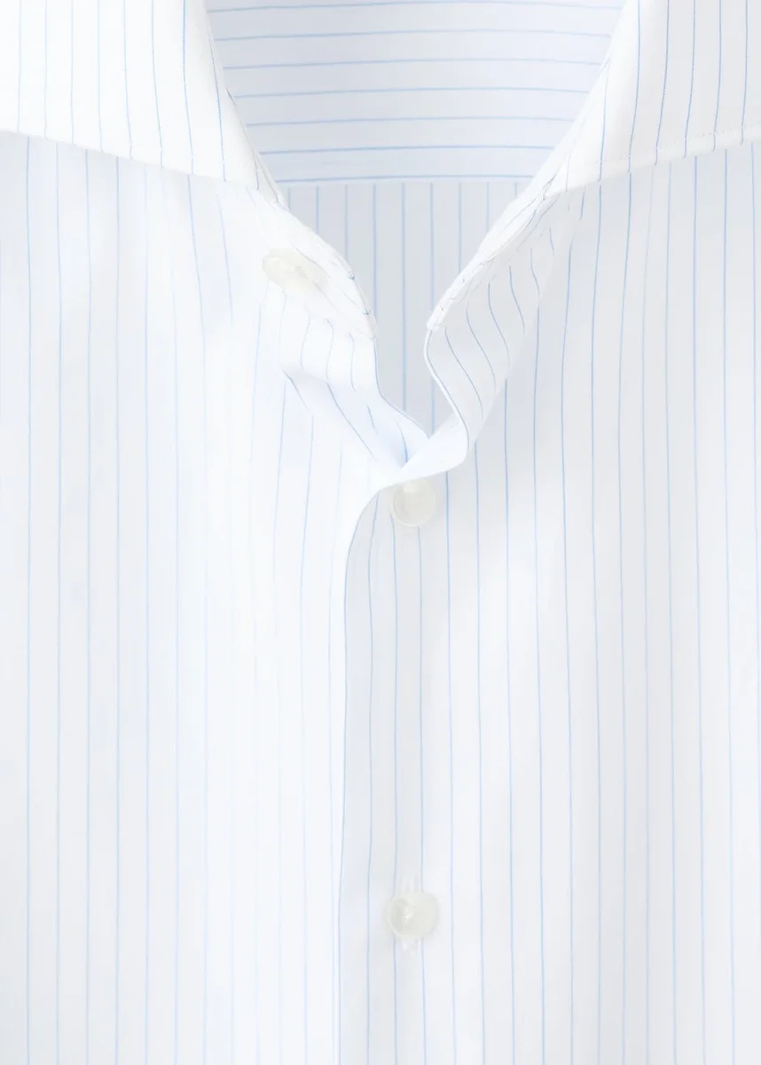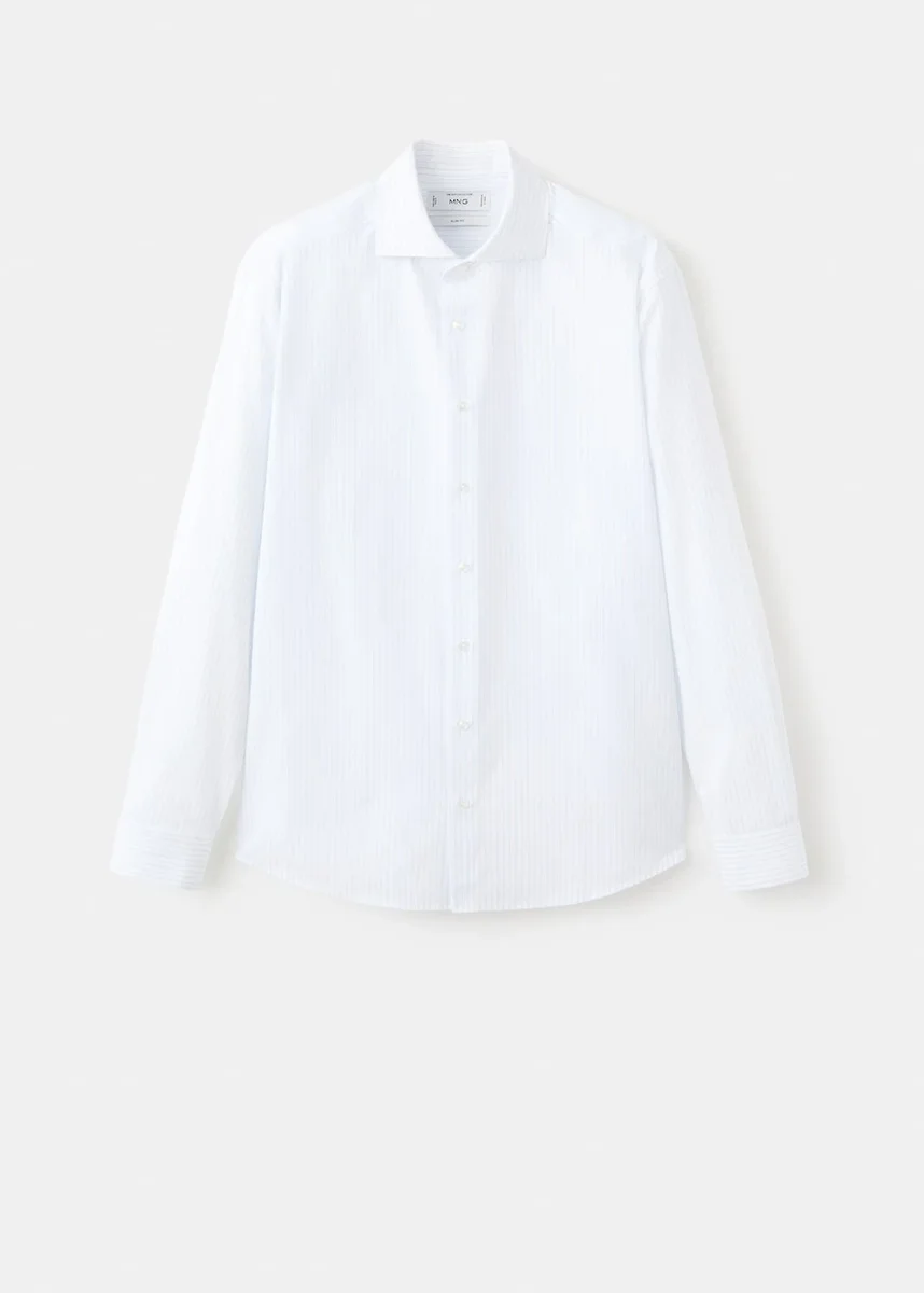 Krój slim fit. 100% bawełna. Wzór w cienkie paski. Klasyczny kołnierzyk. Długie rękawy z mankietami zapinanymi na guziki. Zapięcie na guziki