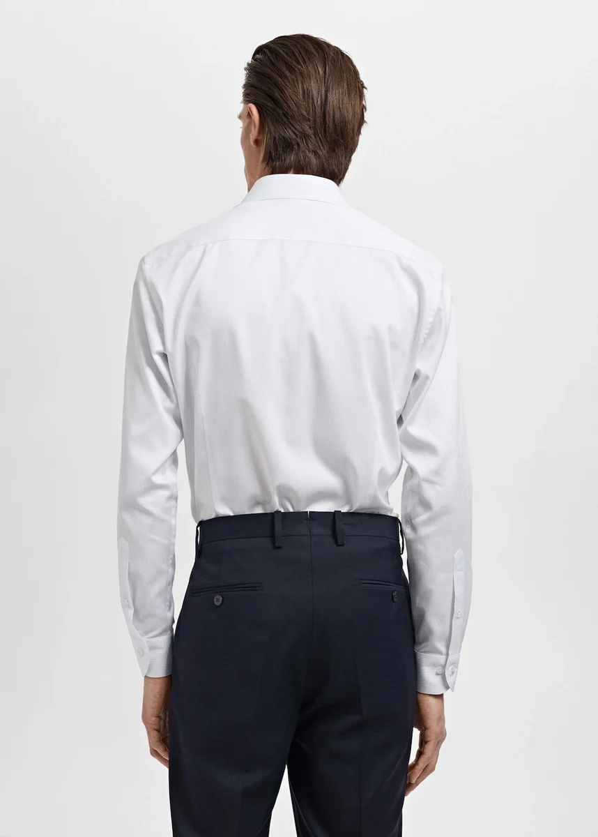 Krój slim fit. 100% bawełna. Nadruk w paski. Rozłożony kołnierzyk. Długie rękawy zapinane na guziki. Zaokrąglony dół.