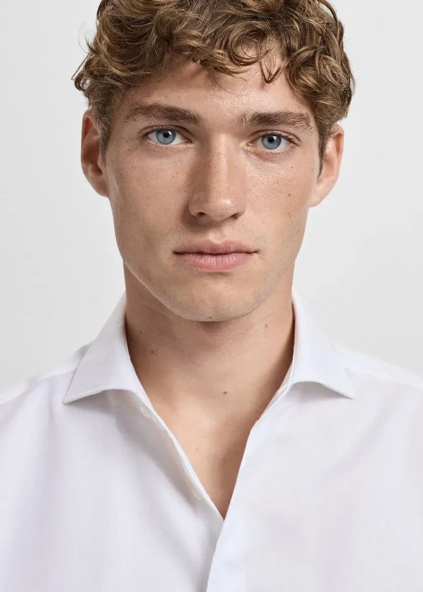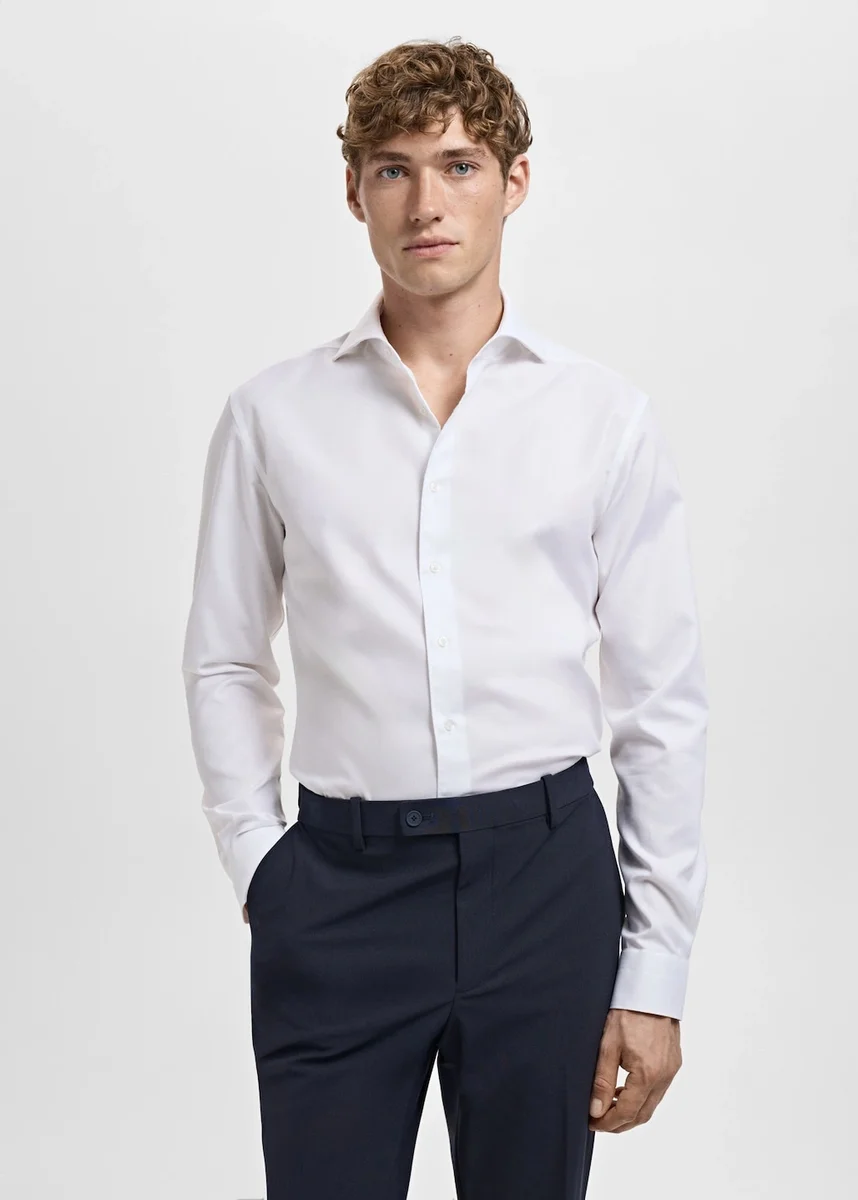 Krój slim fit. 100% bawełna. Kolekcja krawiecka. Klasyczny kołnierzyk. Zapięcie na guziki z przodu. Długie rękawy z mankietami zapinanymi na guziki. Zaokrąglony dół.
