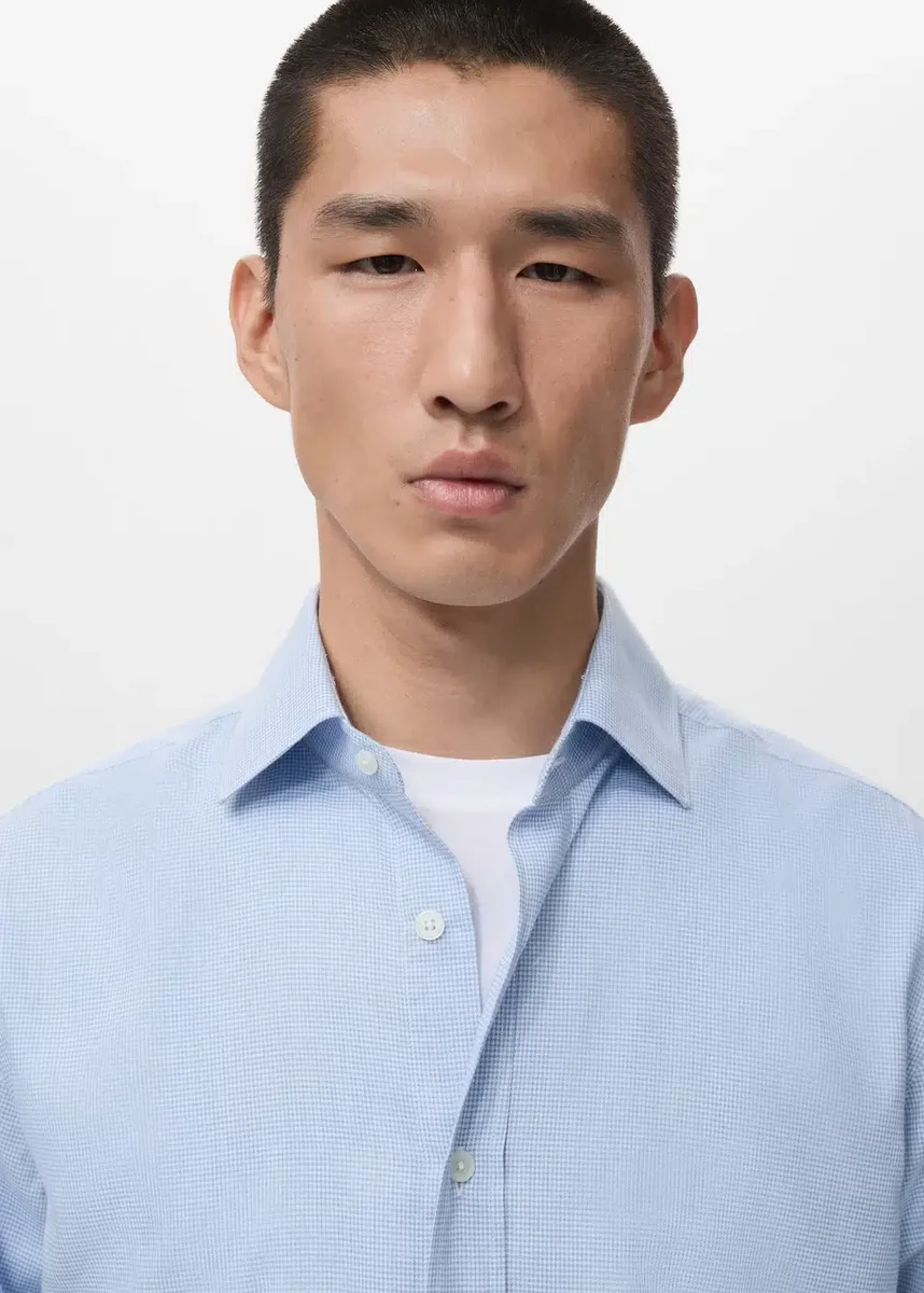 100% bawełna. Regularny krój. Tkanina flanelowa. Mikro nadruk. Kołnierzyk koszulowy. Zapięcie na guziki z przodu. Mankiety zapinane na guziki. Zaokrąglony dół.