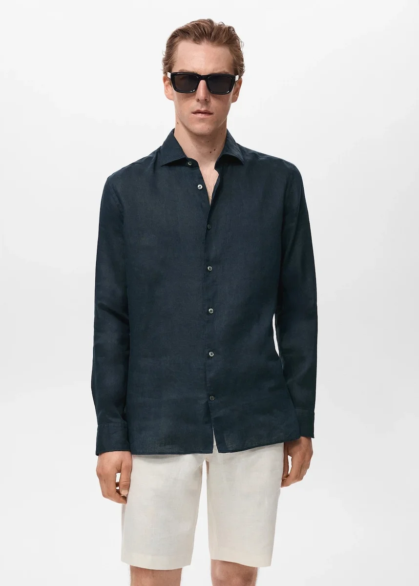 Kolor biały dostępny wyłącznie w sprzedaży internetowej. Dopasowany krój. 100% len. Kołnierzyk koszulowy. Długie rękawy z mankietami zapinanymi na guziki. Zapięcie na guziki z przodu. Prosty dół. Skład: 100% len. Prać w pralce w temperaturze maksymalnej 30°C / 85°F. Nie wybielać. Prasować w temperaturze maksymalnej 110°C / 230°F. Czyścić chemicznie perchloroetylenem. Nie suszyć w suszarce bębnowej. Kolor biały dostępny wyłącznie w sprzedaży internetowej. Krój slim fit. 100% len. Kołnierzyk koszulowy. Długie rękawy z mankietami zapinanymi na guziki. Zapięcie na guziki z przodu. Prosty dół.