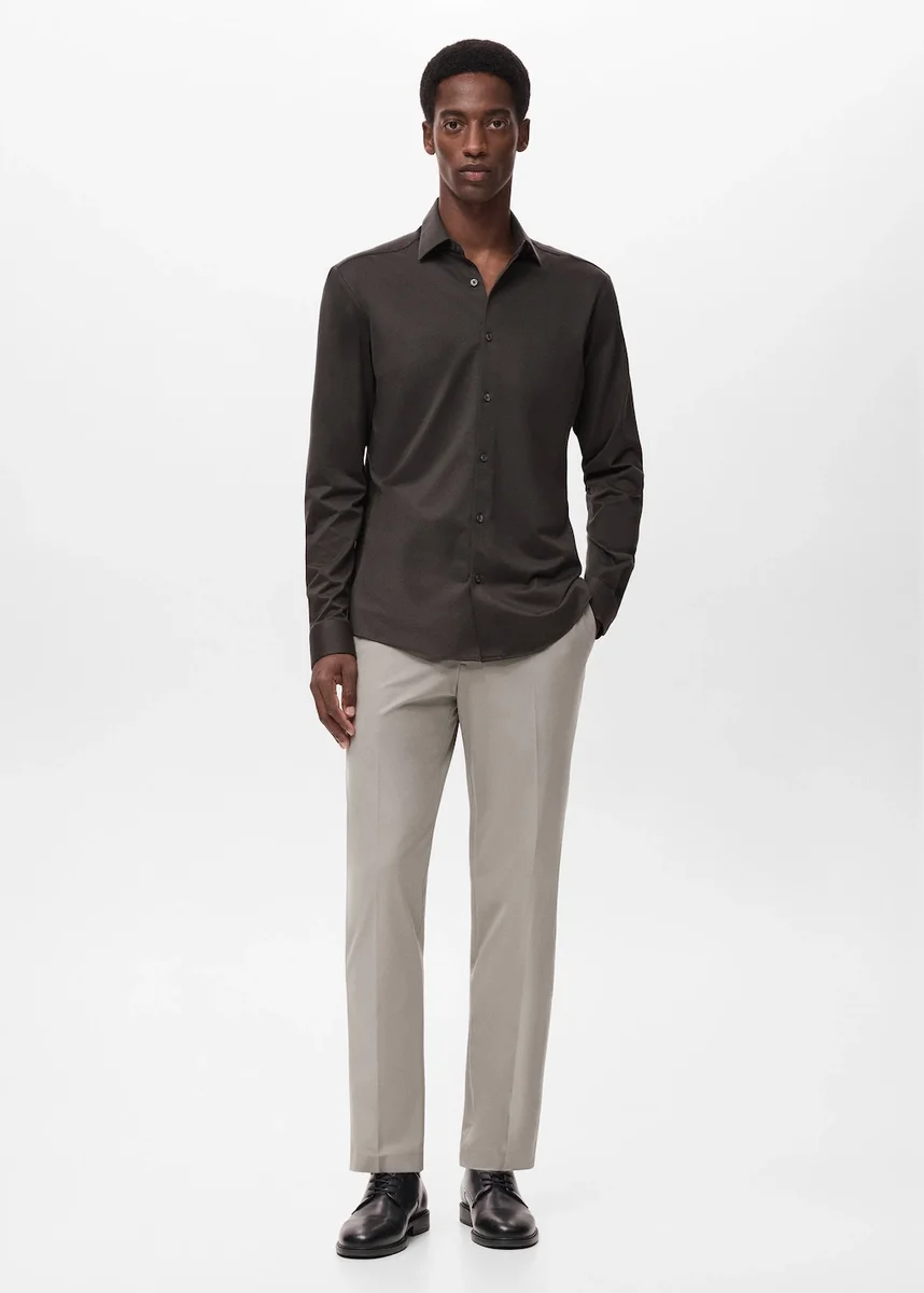 Krój regularny. Tkanina z mieszanki bawełny. Comfort Stretch: elastyczna tkanina zapewniająca dodatkowy komfort. THERMOLITE®: tkanina, która dzięki technologii włókien zapewnia izolację termiczną i oddychalność. Nie wymaga prasowania: odzież, która nie wymaga prasowania, wykonana z tkaniny odpornej na zagniecenia. Oddychająca tkanina. Tkanina strukturalna. Klasyczny kołnierzyk. Długie rękawy z mankietami zapinanymi na guziki. Zapięcie na guziki z przodu.