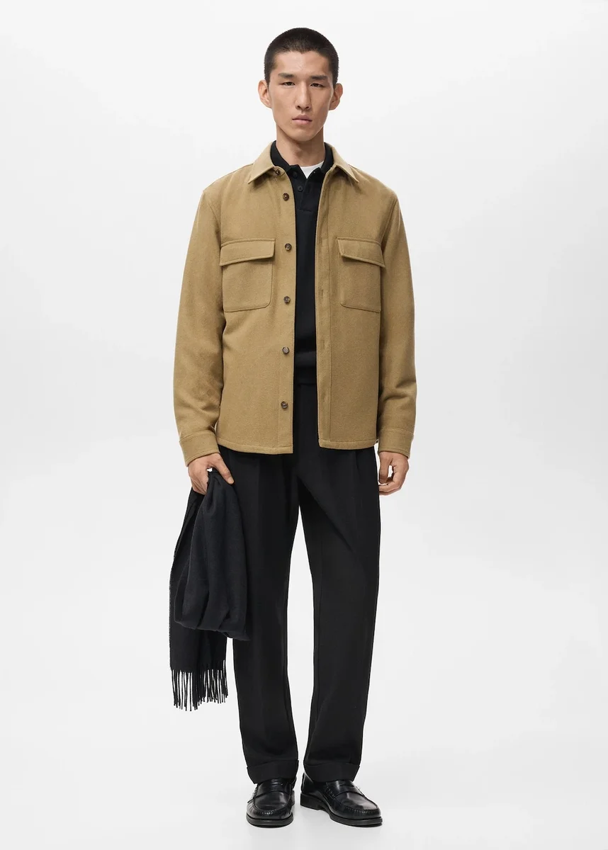 Kolor czarny dostępny wyłącznie w sprzedaży internetowej. Prosty krój. Materiał z domieszką wełny. Kołnierzyk koszulowy. Dwie kieszenie z klapką z przodu. Długie rękawy z mankietami zapinanymi na guziki. Zapięcie na guziki z przodu. Zaokrąglony dół. ESSENTIALS: Stworzone z myślą o trwałości. Wzmocniliśmy nasze standardy jakości, dodając nowe testy wytrzymałościowe do naszych ubrań. Zaprojektowane z dbałością o szczegóły konstrukcyjne, są jeszcze bardziej trwałe, wszechstronne i ponadczasowe.